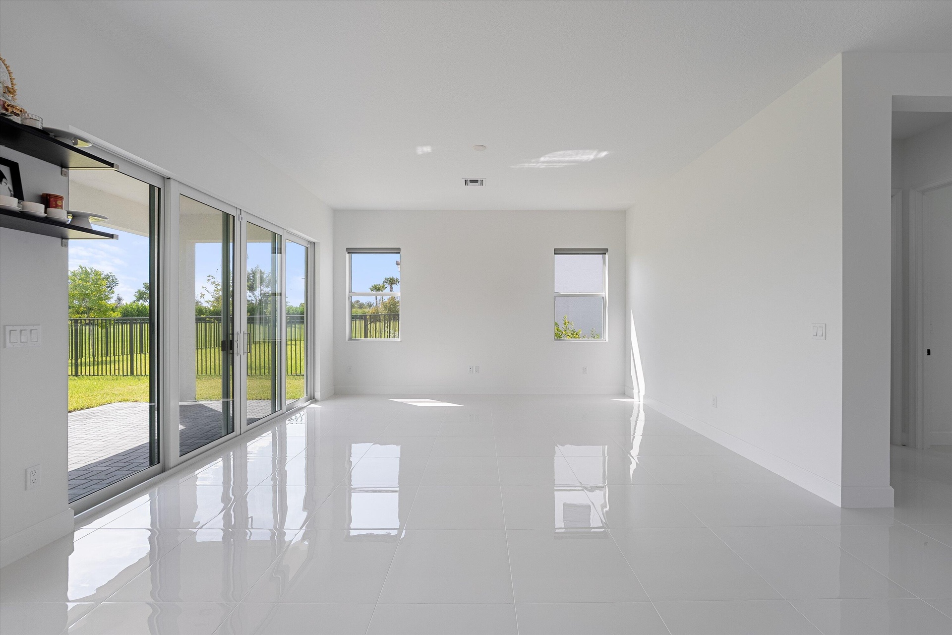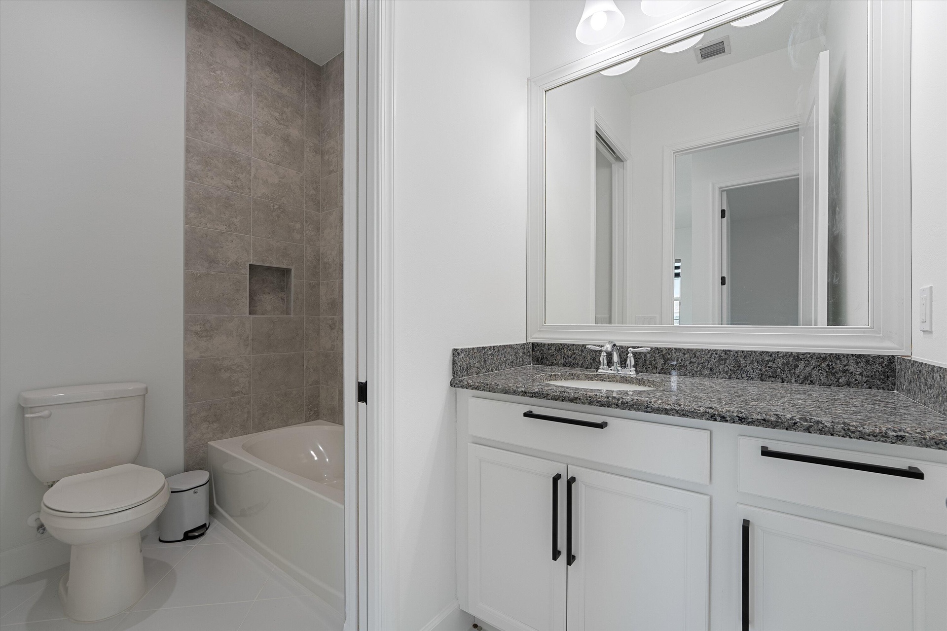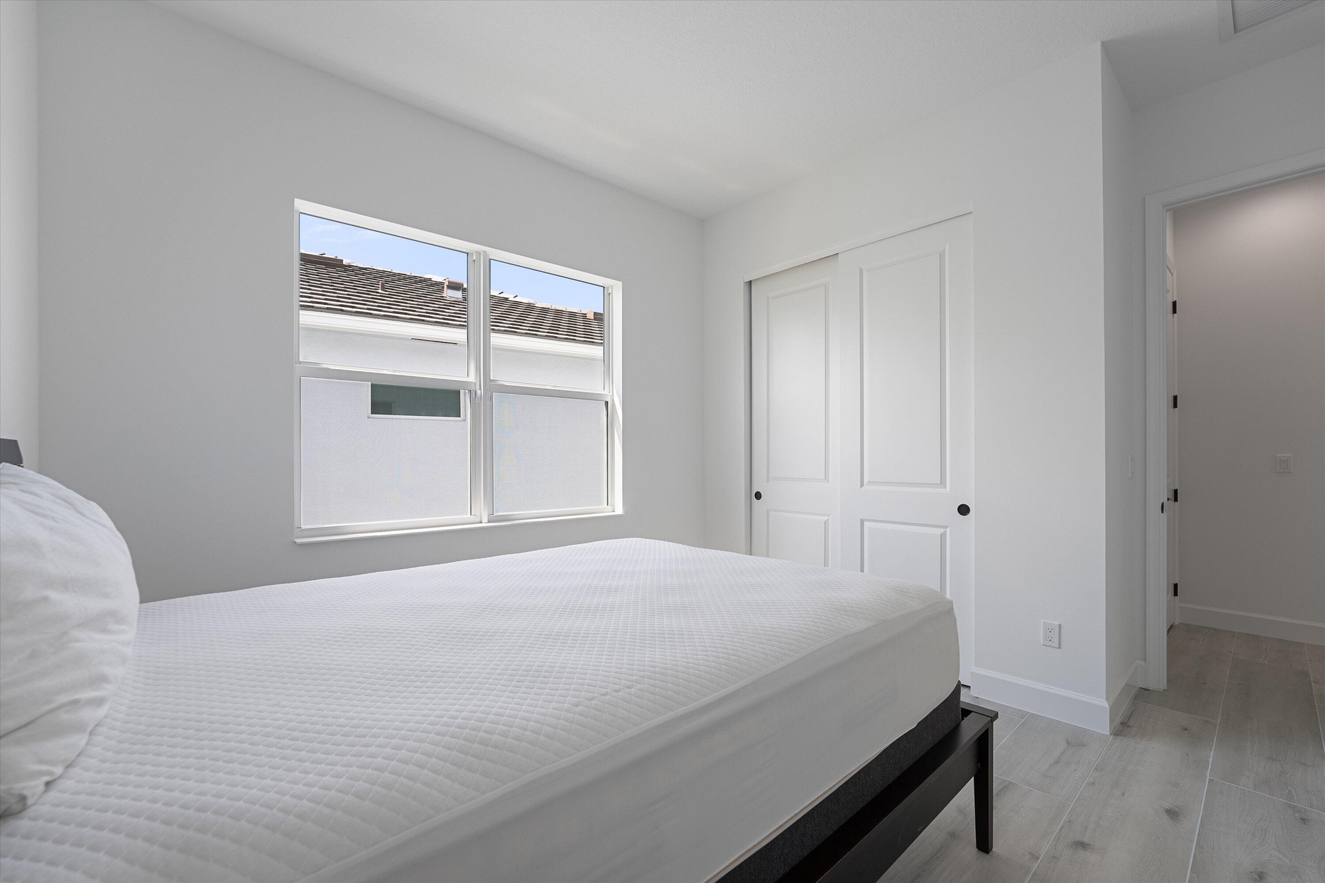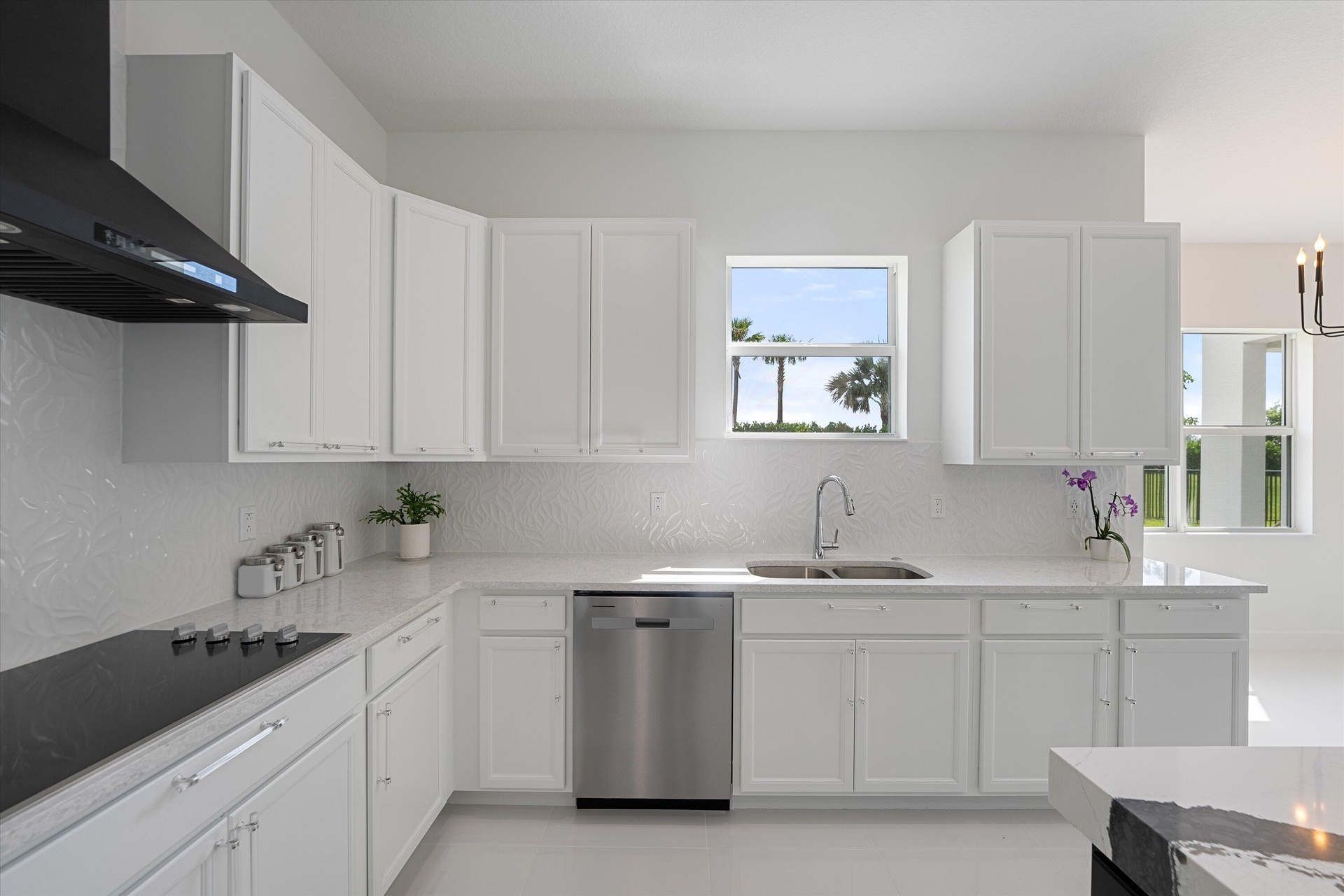 Welcome to this stunning Laurel Model two-story home with a balcony in the highly sought-after Orchards community in Westlake, Florida. With four bedrooms + Loft , three bathrooms and a three-car garage, this residence is filled with numerous upgrades and exudes a clean, modern aesthetic. As you approach the striking black double entry doors, the sense of luxury is immediate. Inside, the living area greets you with glossy white floors, soaring ceilings, and an abundance of natural light, enhancing the open and airy feel. The kitchen is a chef's dream, featuring white shaker cabinets with sleek white quartz countertops along the perimeter, a large closet pantry, and black shaker cabinets on the island for a dramatic contrast. Equipped with all-new stainless steel appliances, including a double wall oven and microwave complemented by a striking black hood, it epitomizes modern elegance. A spacious kitchen island, topped with a contemporary black and white quartz countertop, offers additional seating, while the kitchen also allows for a cozy breakfast area with a window view. The ample dining space and large family room with sliding glass doors provide seamless indoor-outdoor living, overlooking a vast backyard with extended pavers, perfect for relaxation or entertaining. Downstairs, you'll find a spacious bedroom with a walk-in closet, offering flexibility for guests or home office needs. Adjacent to this bedroom is a well-appointed full bathroom featuring black cabinets with upgraded pulls, a granite countertop with sleek silver fixtures, a beautifully framed mirror, and a seamless glass shower with elegant white tiles. Upstairs, grey wood grain ceramic tile extends throughout the entire level, leading you to a versatile loft area and the luxurious master suite. The master bedroom, with a tray ceiling, boasts a sitting area with impressive 10-foot ceilings. From the master suite, step out onto a covered balcony that overlooks the serene backyard. The master bathroom is spacious and stylish, offering dual sinks separated by a corner shower, black cabinets, sleek silver fixtures, and gray shower tiles with matching floor tiles. Its clean white tile flooring adds a touch of sophistication. Two additional bedrooms upstairs include a walk-in closet and another with a standard closet, both offering comfort and ample space. The upstairs bathroom features white shaker cabinets, gray granite countertops with black pulls, silver fixtures, and a white framed mirror, with a separate tub and toilet room. The shower is beautifully tiled in a horizontal pattern, with a clean white tile floor. The conveniently located laundry room includes brown shaker cabinets, granite countertops, and an upgraded washer and dryer. Experience the perfect blend of modern design and comfortable living in this exceptional rental home. ** FENCE HAS BEEN INSTALLED! **