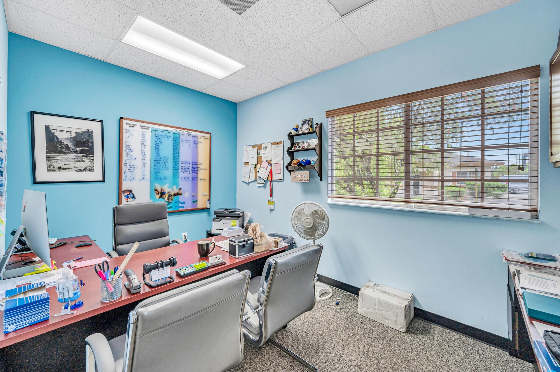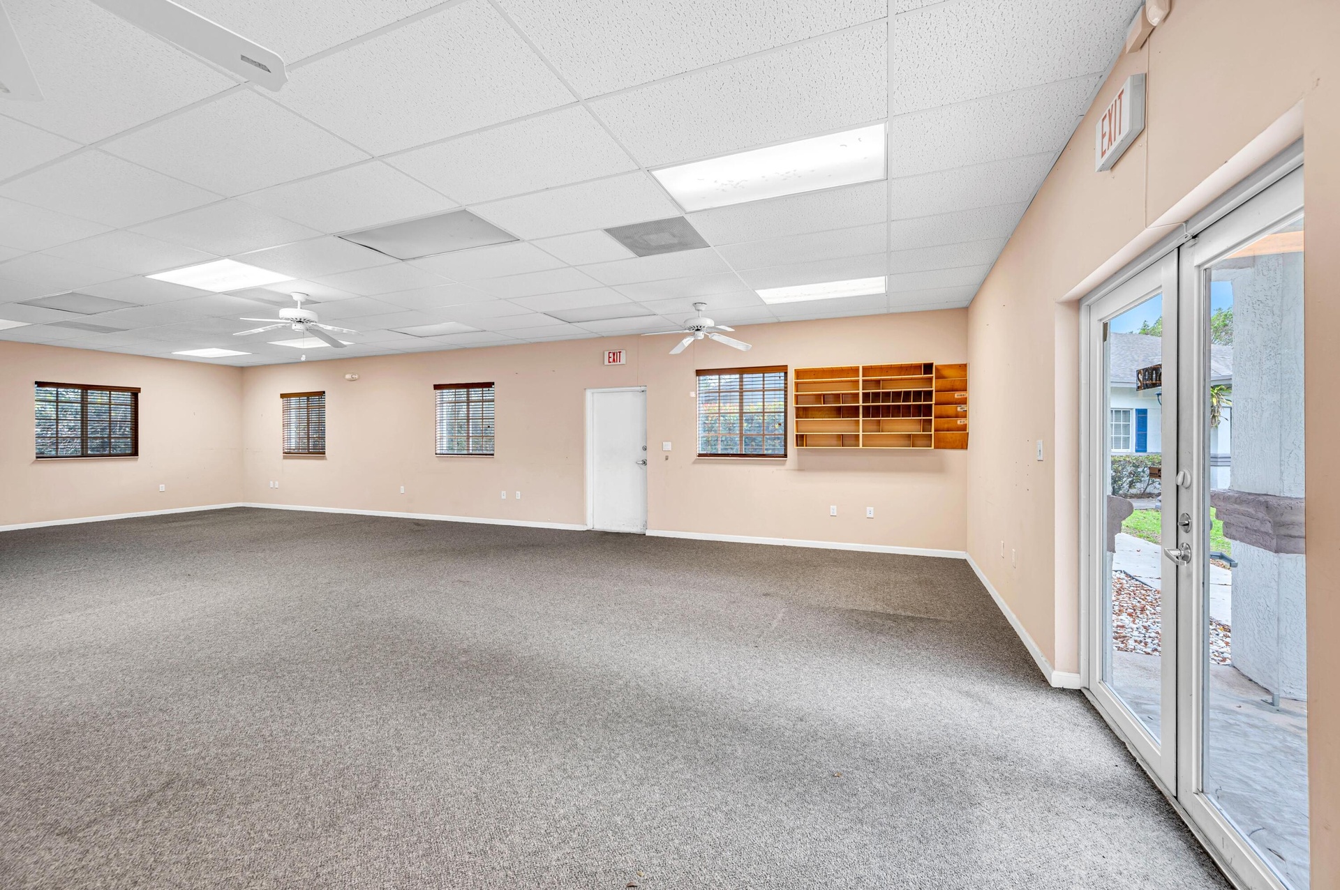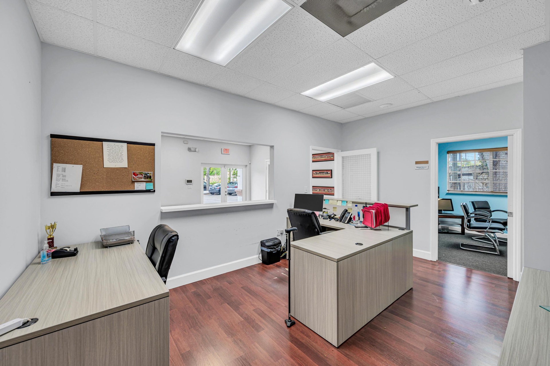 Less than 2 miles to Turnpike, free-standing zoned B-3 building. Functional, well-maintained office space, 3,473 SQFT in The Village Office & Classic Car Park. New roof installed in 2024, new HVAC in 2022. Impact windows and doors, wood flooring throughout. The property includes 16 parking spots (14 standard and 2 ADA) and was resurfaced and striped post photos. With two separate entrances, the layout is flexible and currently set up as one large (owner occupied) and one small suite (vacant). Owner is willing to leave or sign a 2 to 3 year annual lease, offering immediate options for an owner-user or investor. Easy to access and ready for a new owner. Parking lot was just resurfaced and painted.