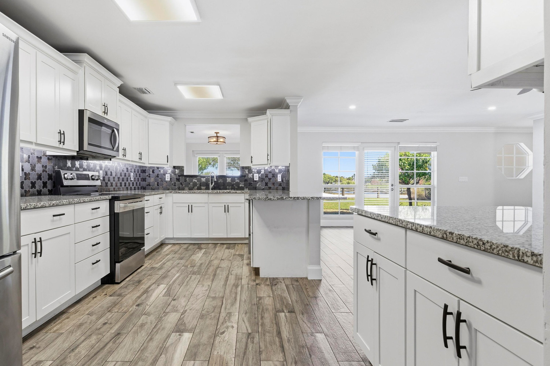 Wake up to stunning direct lake views in this beautifully updated mid-century modern home! This spacious 5BD/4BA residence features a flexible layout with a 4BD/3BA main home plus a private 1BD/1BA suite with separate entrance—ideal for guests or extended family. Fully renovated in 2017, enjoy an open-concept design, modern kitchen with white shaker cabinets, granite counters, and a large bar perfect for entertaining. Situated on an oversized corner lot with two driveways and room for a trailer or boat. Prime location near I-95, top dining, shopping, and beaches—live the ultimate South Florida lifestyle!