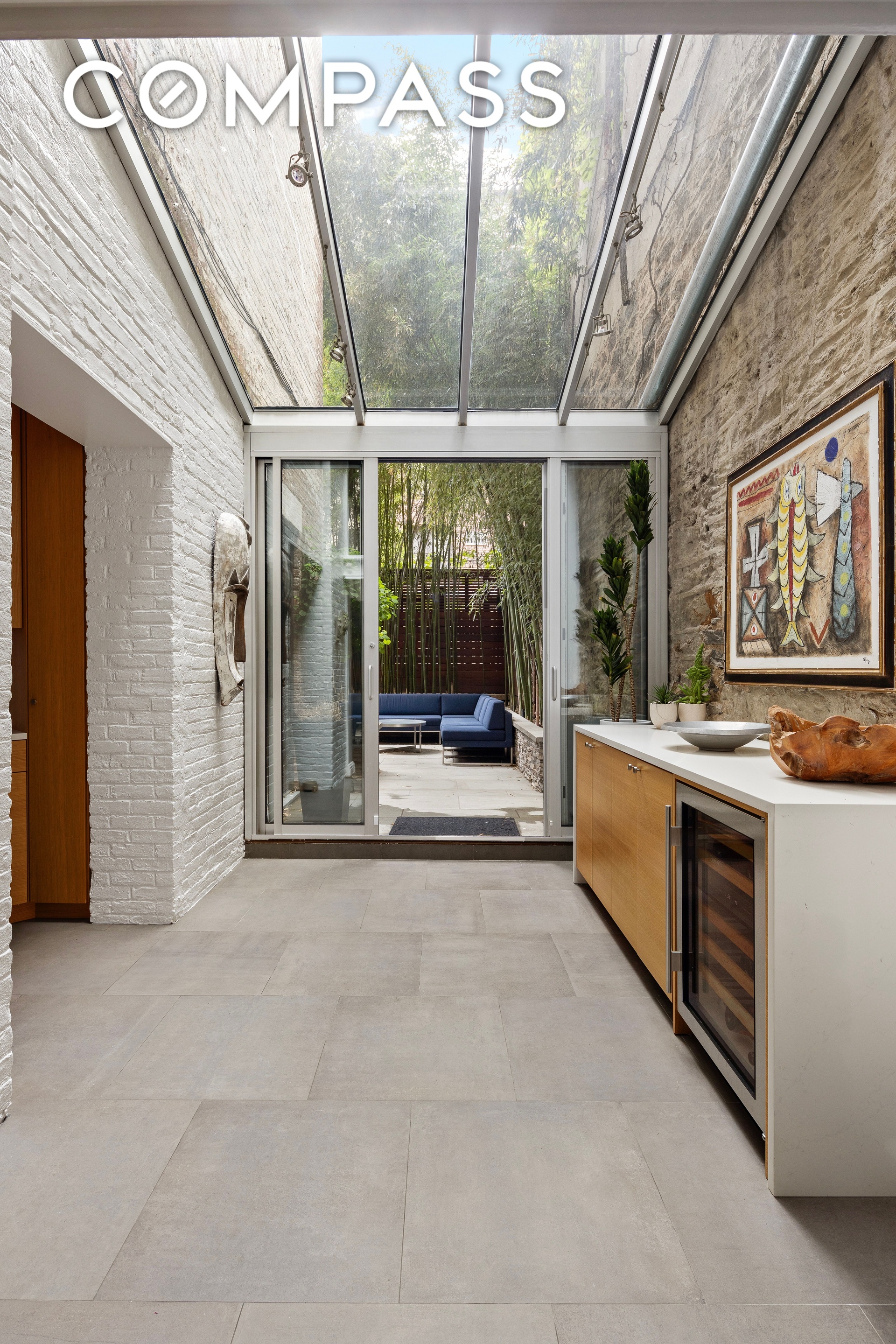 This chic townhouse-style duplex home is move-in ready and offers an incredibly unique NYC experience - dramatic ceilings up to 20-ft, three spacious bedrooms, two and a half bathrooms, a solarium, a wood-burning fireplace, and a gorgeous private garden retreat. The natural gas grill tempts you to indulge in al fresco dining; the wisteria-draped pergola invites you to dinner parties. And it’s all totally yours.