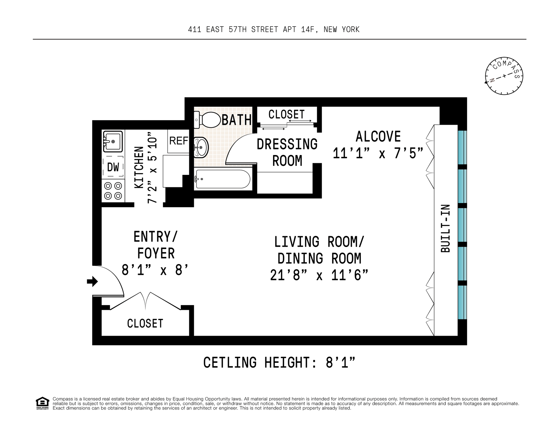 Perched high above 57th Street in the most desirable part of Sutton Place, Residence 14F is a sun drenched alcove studio in a white glove doorman building with amazing staff.