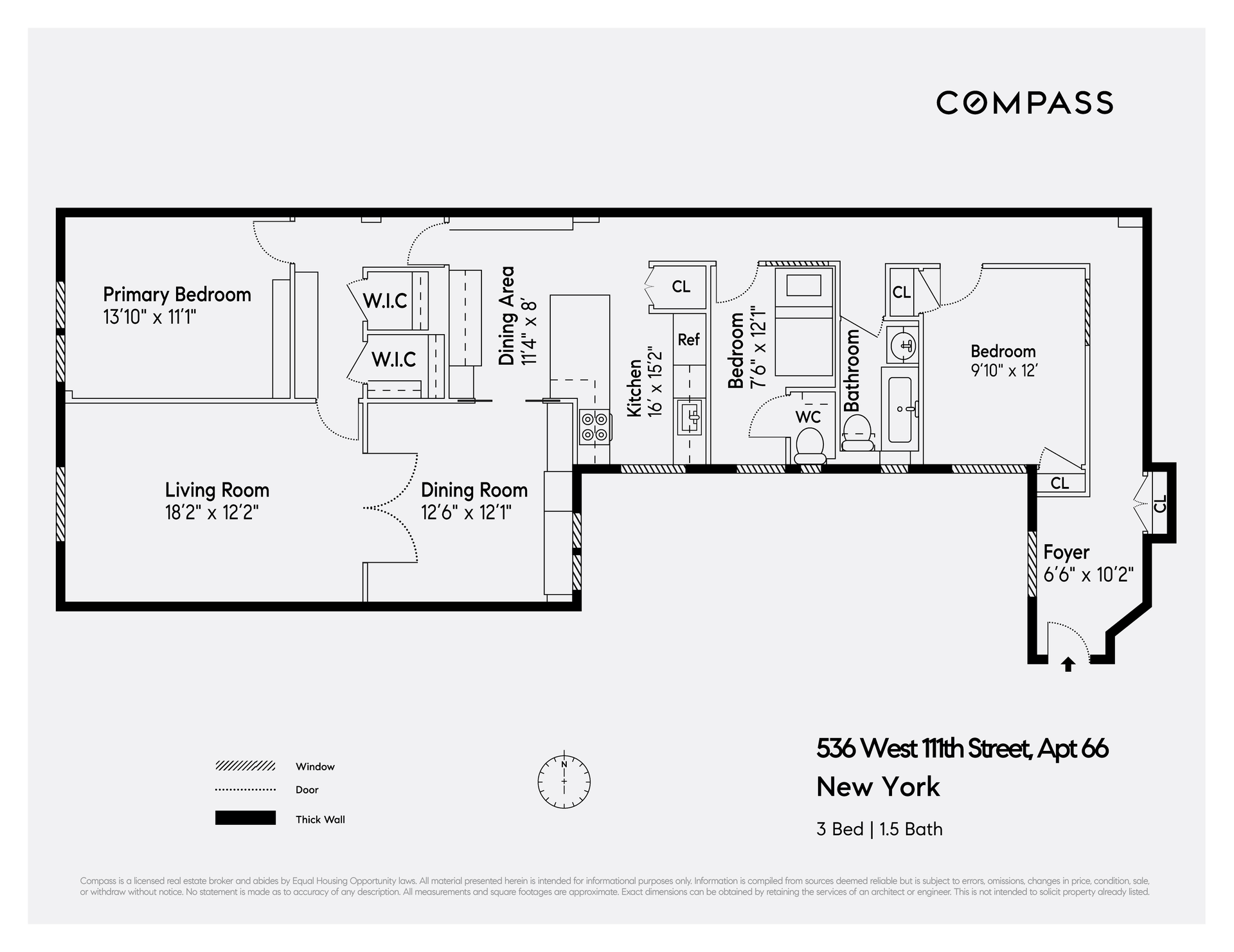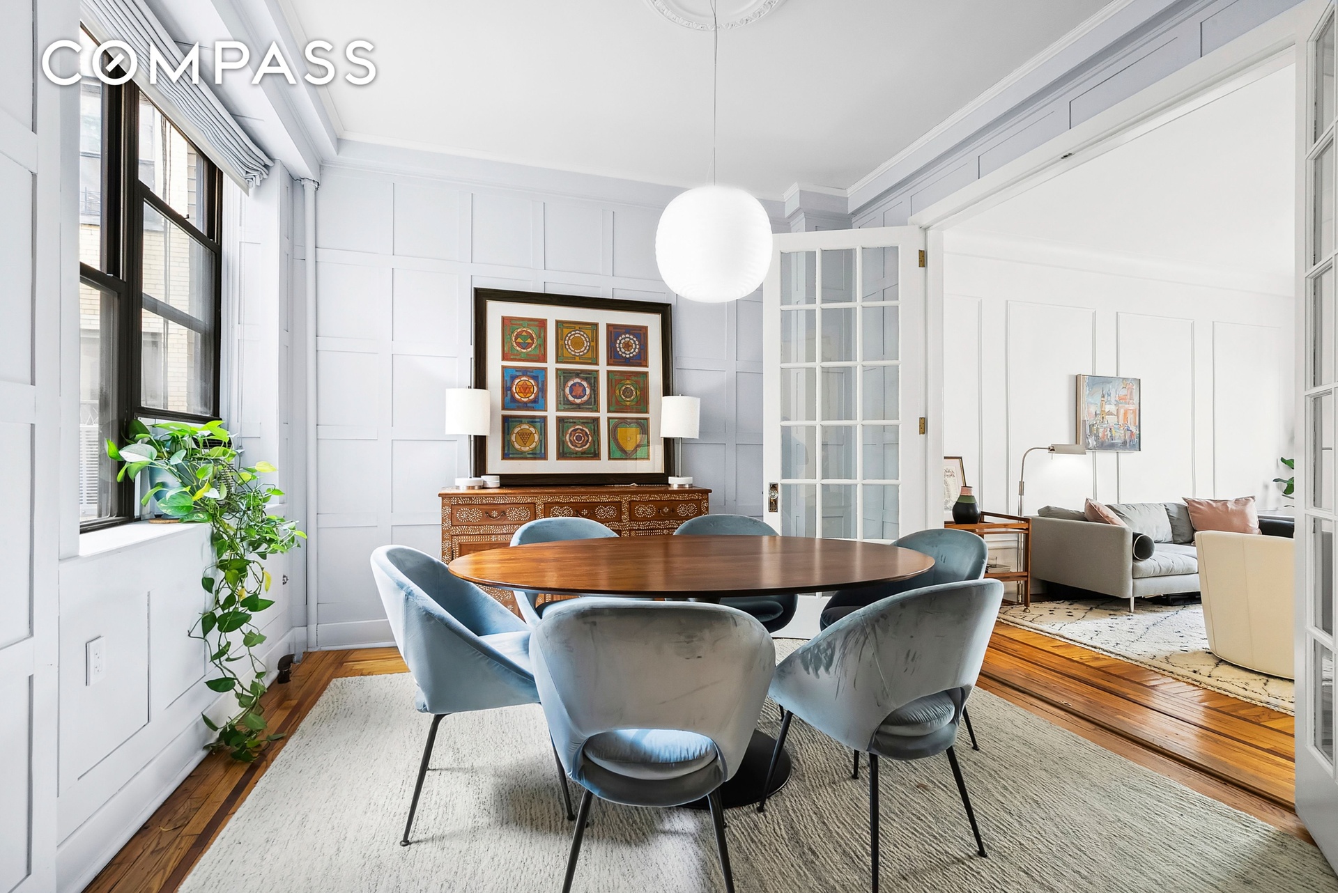 Quintessential pre-war residence in stunning turn of the century co-op on a beautiful tree lined street in the heart of the vibrant Columbia University neighborhood. This bright and spacious 3 bedroom, 1.5 bath home has preserved the elegance of the pre-war architecture enhanced by gracious moldings, paneled formal dining room, beautiful oak floors and 10ft ceilings throughout. The fully equipped eat in windowed kitchen also has a much desired large capacity vented washer and dryer. The windowed primary bathroom was renovated and has been complimented with oversized subway tiles. The apartment is in the front of the building and has N-S-W exposures, flooded with light all day! The gracious layout is perfect for living and entertaining and the residence has ample closet space throughout.