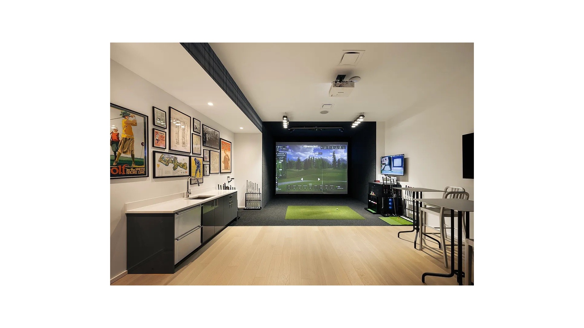 The sleek Italian kitchen is finished in premium materials and equipped with fully integrated Gaggenau appliances, including an induction cooktop, speed oven, and wine refrigerator.