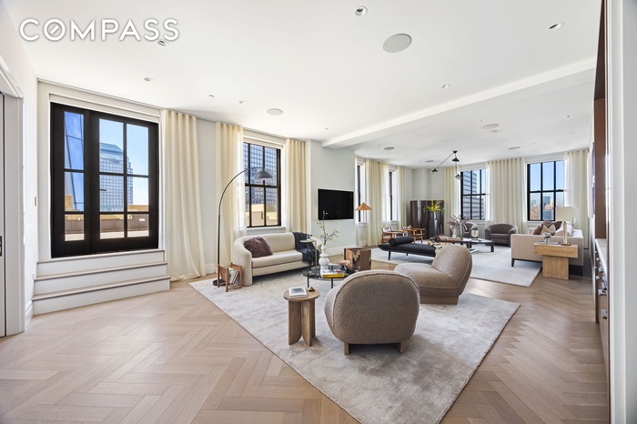 Residence 21AD at 100 Barclay Street is a custom-designed five-bedroom, four-and-a-half-bathroom home offering 5,317 square feet of interior living space and over 1,550 square feet of outdoor space. Thoughtfully laid out by Ismail Leyva Architects, this exceptional residence showcases sweeping Hudson River views and expansive areas for both everyday living and grand entertaining.