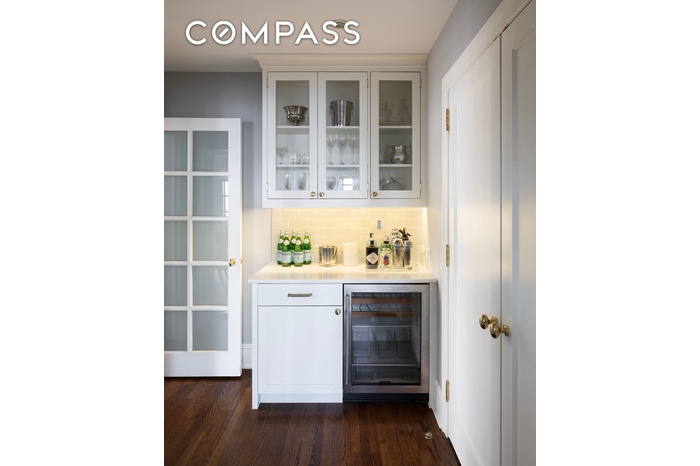Modern comforts throughout the home include both central and through-wall air conditioning, a laundry closet with Miele washer and dryer, built-in speaker system and over-sized tilt and turn picture windows. Timeless prewar details remain intact, including decorative moldings and trim, hardwood floors, French doors and a decorative fireplace with marble hearth.