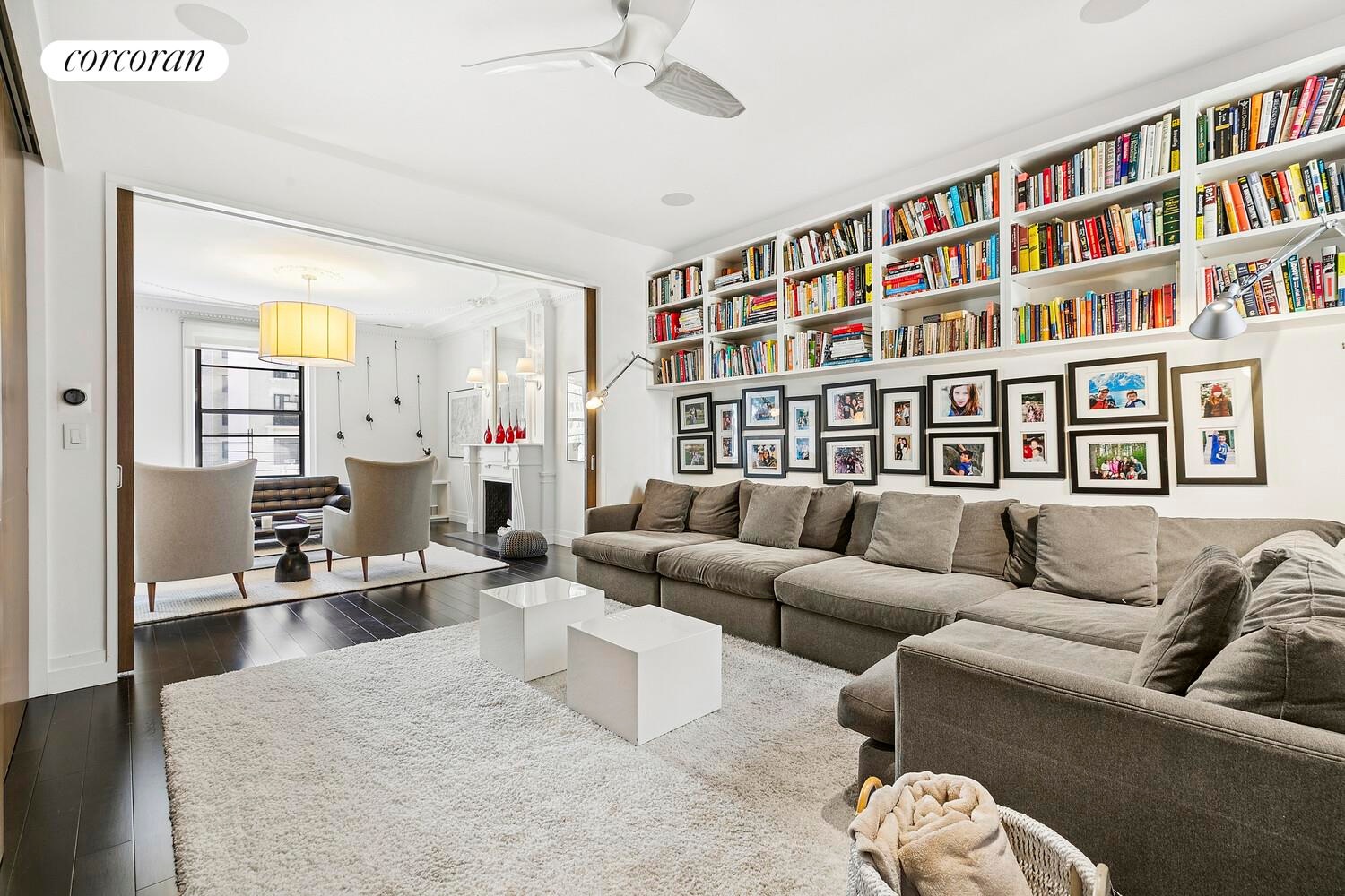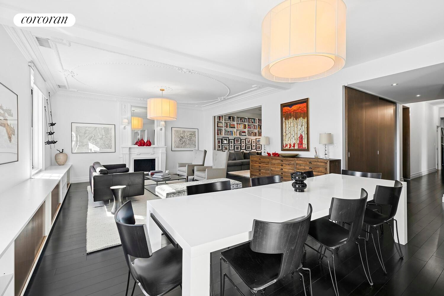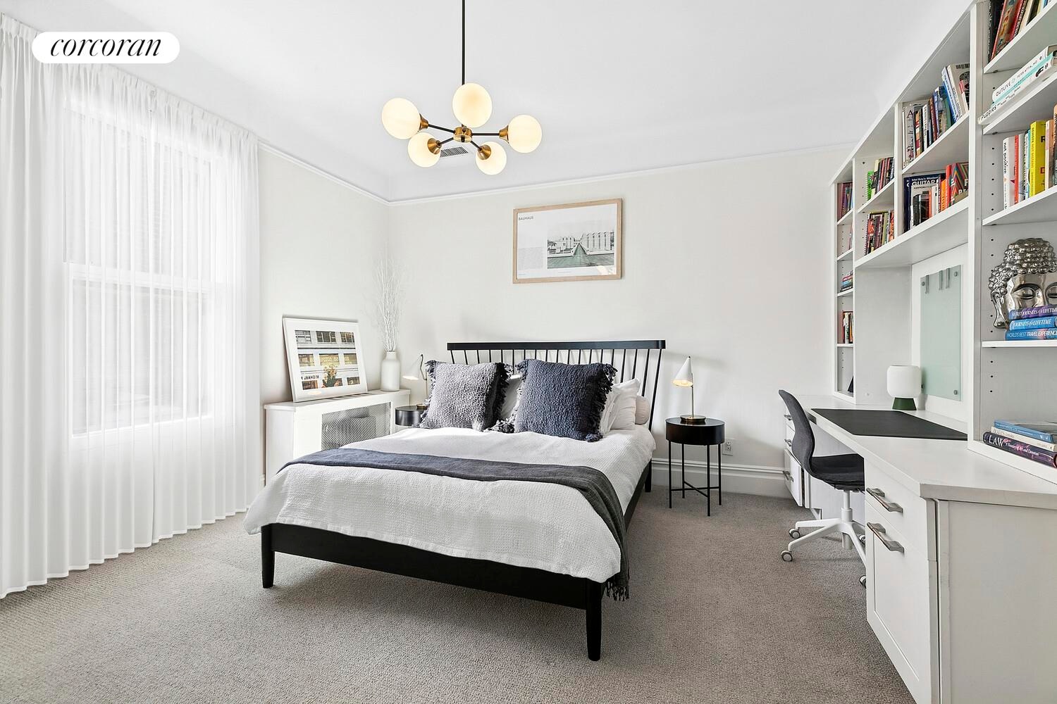 Currently configured as a three-bedroom plus den, the fully enclosed den is located just off the living room and can easily be reconfigured into a true four-bedroom, three-bathroom layout. The home lives like new construction while maintaining timeless prewar charm. Original crown moulding, soaring ceilings, and rich architectural details create a warm and inviting atmosphere throughout. Additional highlights include an abundance of custom closets, a dedicated home office, in-unit LG washer/dryer, and an open kitchen outfitted with state-of-the-art appliances.