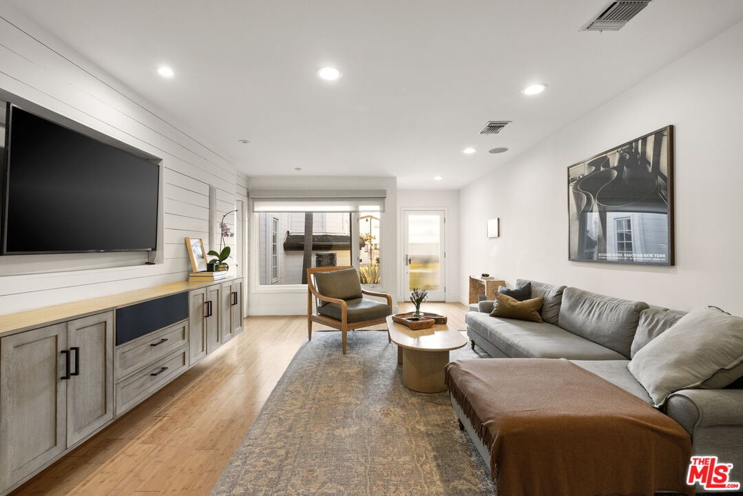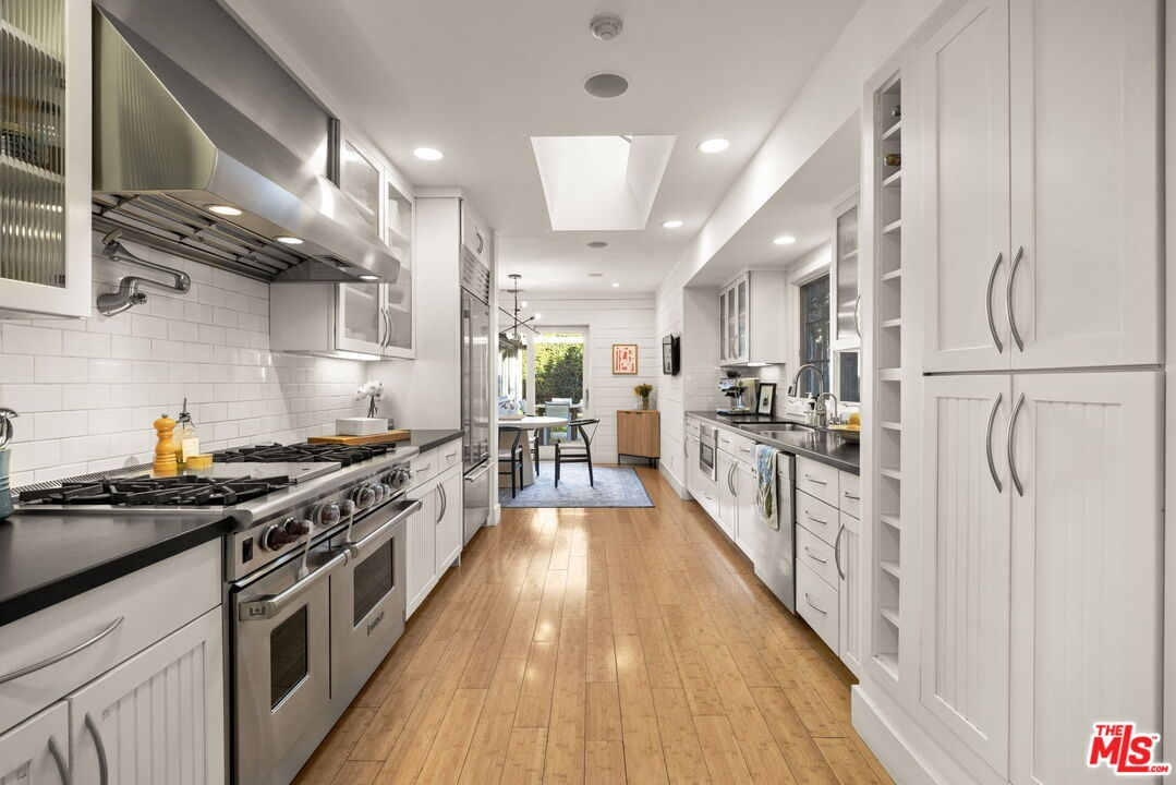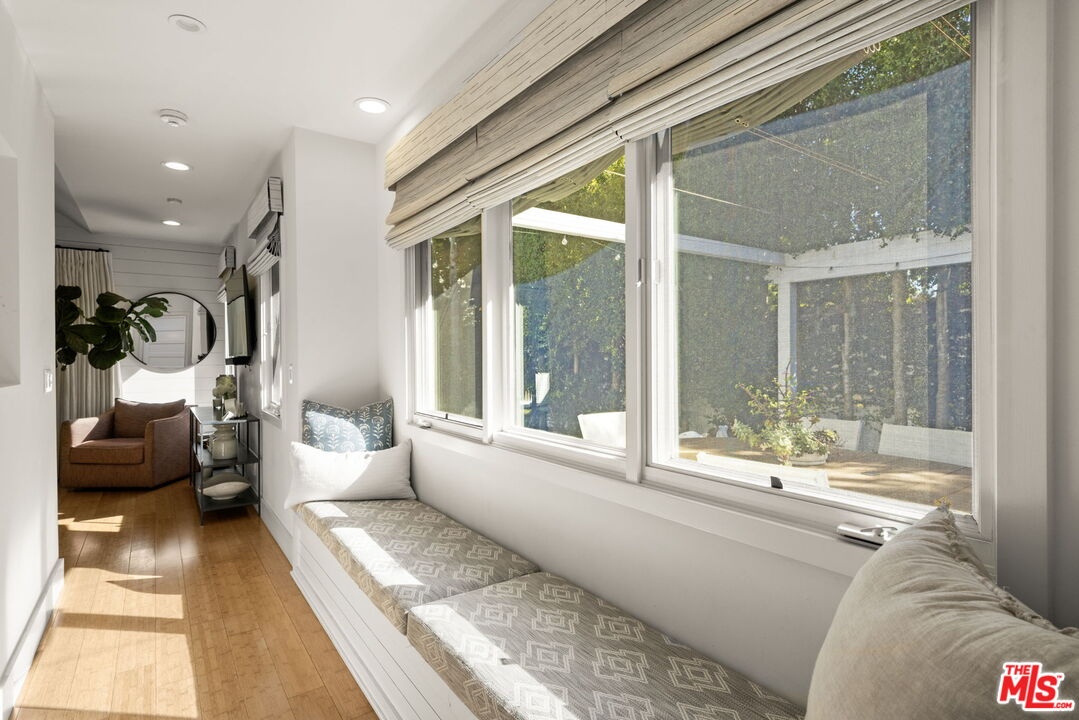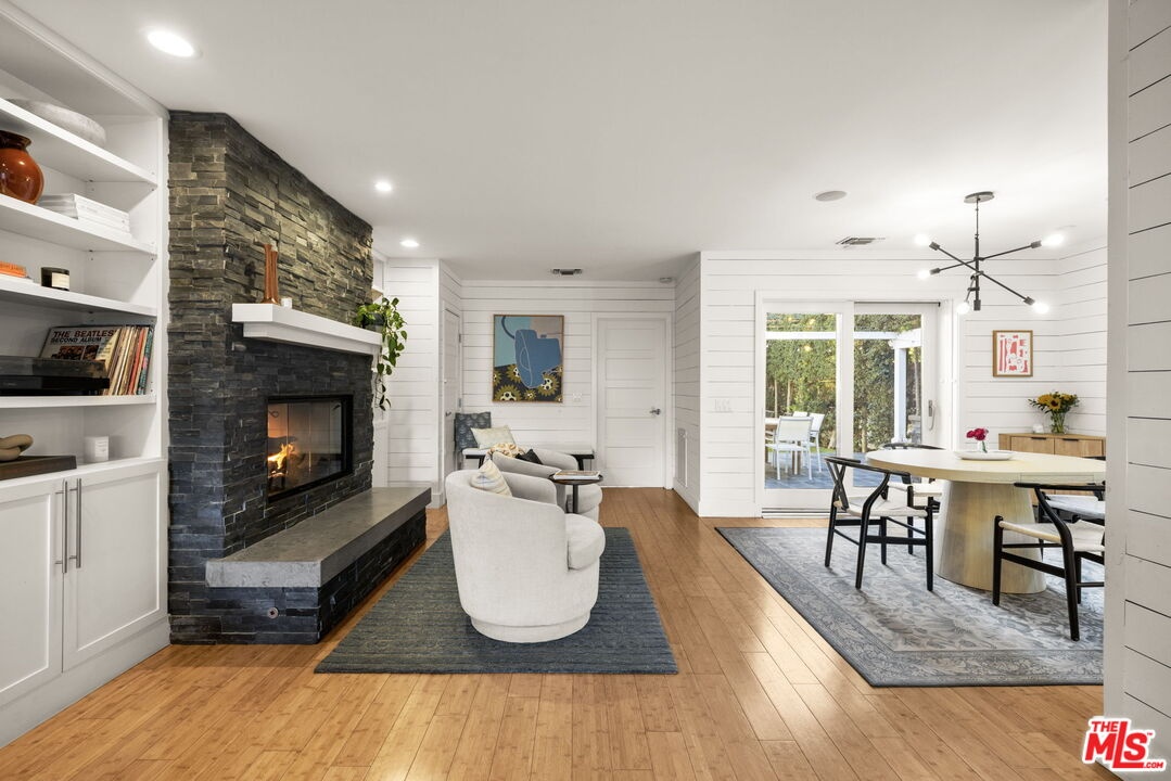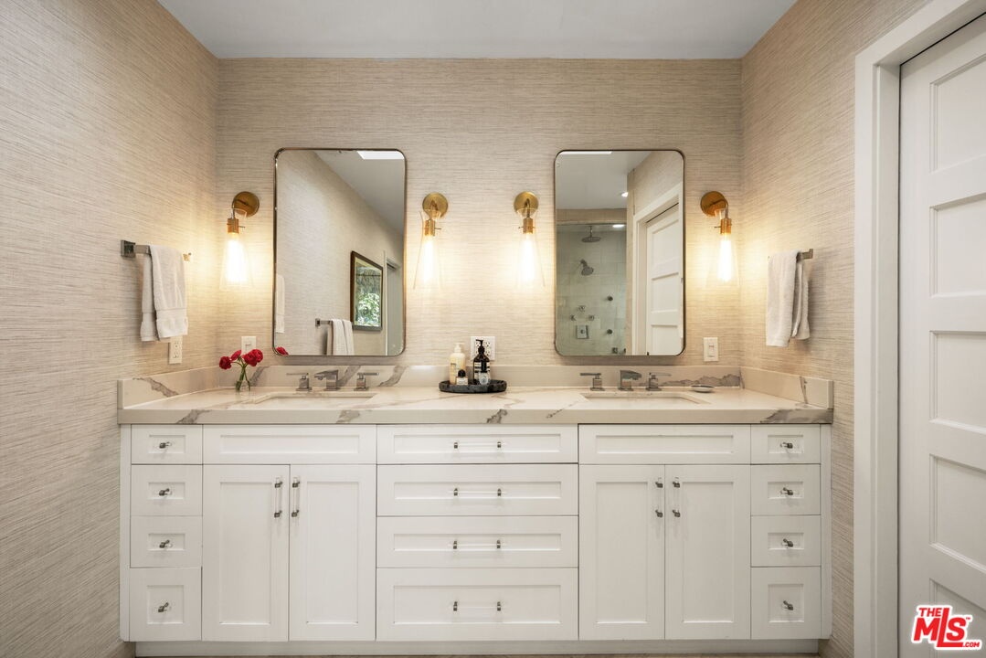 Tastefully updated Brentwood retreat with a rare blend of timeless charm and modern amenities. This bright and airy 3-bedroom home features a versatile upstairs bonus room with a vaulted beam ceiling which is an ideal office, media room or playroom. Gourmet chef's kitchen with stainless steel appliances, a walk-in pantry and a breakfast/dining area which can fit large dinner parties as it is seamlessly integrated into a larger family room-great room with a cozy fireplace. The Primary suite has vaulted ceilings, direct access to the backyard, and a luxurious spa like bathroom with a large walk-in closet. Well proportioned secondary bedrooms with built out closets which share the hallway bathroom. The sun drenched back yard is private and quiet with a tall private hedge, lush landscaping, a gas pit and an outdoor shower. The entertainers deck has a retractable awning, built in bbq, sink, warming drawer, and refrigerator. Additional features include a dedicated office nook, 2 car garage with built-in storage, 2 electric chargers, gated driveway and front yard, alarm system with cameras and surround sound speakers (indoor and outdoor). Located close to restaurants, markets, boutiques and Sunday Farmer's market.