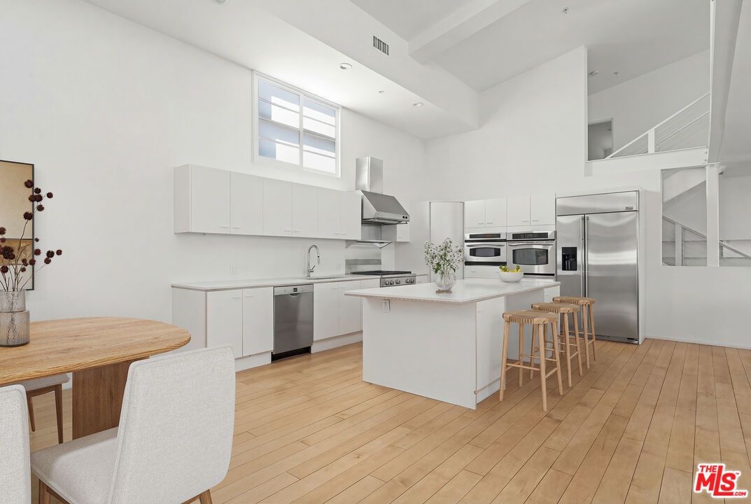 Live, work, and enjoy the best of Venice from this light-filled 3,100+ square foot architectural gated residence on iconic Abbot Kinney, designed by world-renowned architect Mark Mack and located in the sought-after Bay Cities Lofts. With a private wraparound garden, parking for 3+ cars, and a flexible layout that lives beautifully as a home, this one-of-a-kind residence puts some of Los Angeles' best dining, coffee shops, boutiques, and neighborhood energy right outside your door. Spanning three expansive levels, the home offers soaring ceilings, walls of glass, hardwood floors, and an airy open layout that feels both dramatic and comfortable. The main living level features an open-concept design with custom cabinetry and high-end appliances, creating an ideal space for everyday living, entertaining, or simply enjoying the architectural character of the home. The private primary suite is thoughtfully positioned apart from the main living spaces and is complemented by two additional bedrooms, offering flexibility for guests, family, or a home office. On the entry level, a spacious bonus room with an en-suite bath opens directly to the wraparound garden and could easily function as a fourth bedroom, guest suite, media room, or additional office. Upstairs, a striking top-level loft with floor-to-ceiling windows provides even more versatility as a lounge, studio, workspace, or creative retreat. Complete with in-unit laundry, a private two-car garage, and additional secured parking, this serene and adaptable residence offers a rare opportunity to lease an architectural home in one of Venice's most vibrant locations.