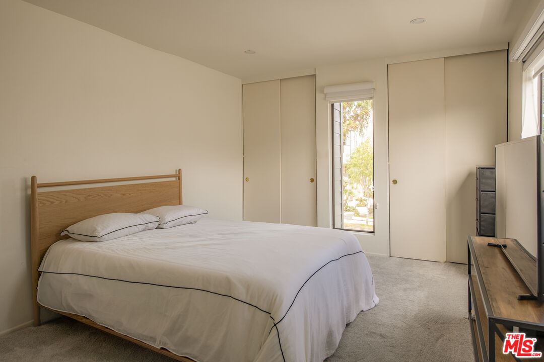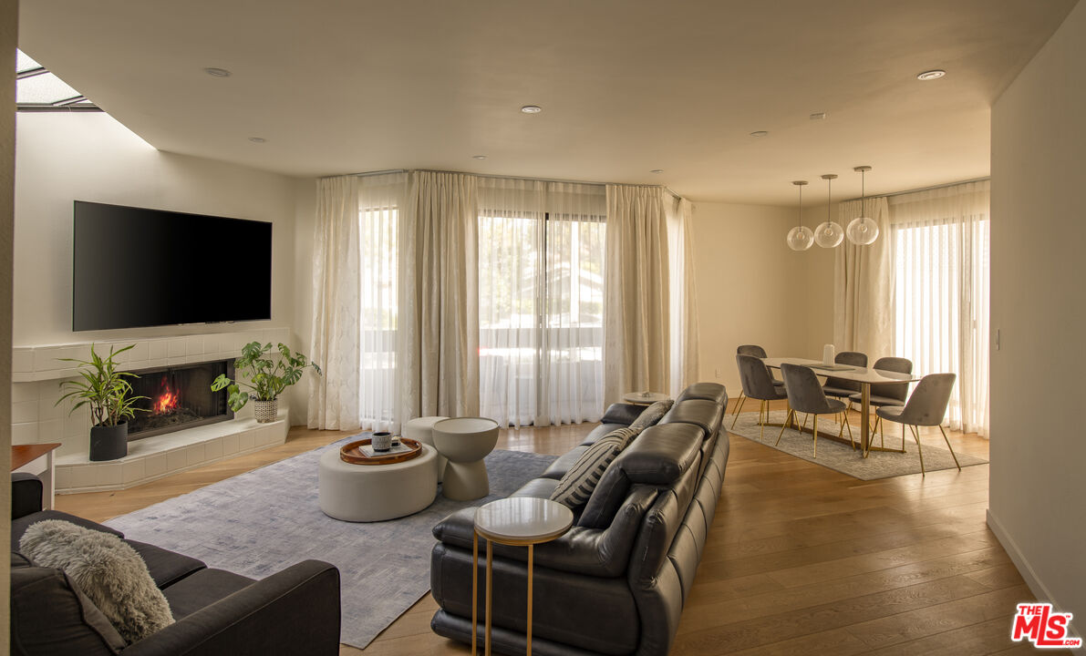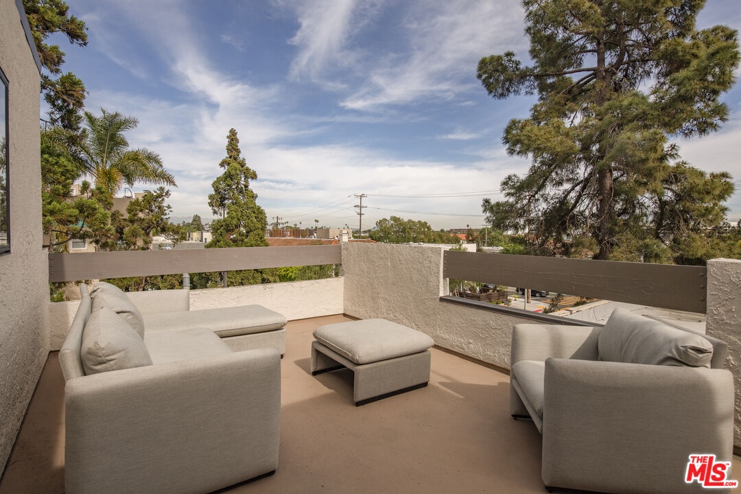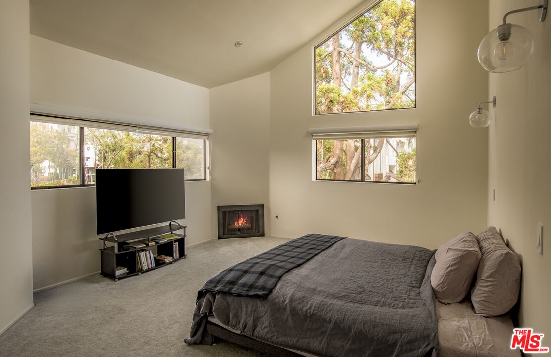 Front-facing and thoughtfully updated, this townhouse-style residence offers the feel of a private home in an intimate Santa Monica setting. This light-filled 2-bedroom, 2.5-bath home features soaring ceilings, expansive windows, and an open, airy layout throughout. The living room is anchored by a fireplace and opens to a lush, greenery-lined patio, while the adjacent dining area flows seamlessly to a second outdoor space, perfect for indoor-outdoor living. The remodeled kitchen is tastefully appointed and includes a convenient in-unit laundry area. Upstairs, the spacious primary suite showcases high ceilings, abundant natural light, and a beautifully updated bathroom with dual sinks, spa tub, and generous closet space. A well-sized secondary bedroom offers excellent light and storage. A versatile loft provides the ideal space for a home office or gym and leads to a large private rooftop terrace with lovely city views. Additional features include hardwood floors, a fireplace, two parking spots in the garage, an EV charger for unit 1 exclusive use, and a storage unit in the garage. Located just moments from the ocean, dining, shopping, and all the best of the Westside, this is an exceptional lease opportunity in a prime Santa Monica location.