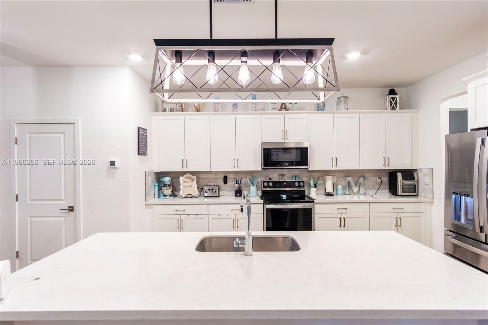 Beautiful 4 Bed / 3 Bath PLUS DEN Single-Story home situated on an oversized lot with NO HOA. This spacious residence features an open-concept layout with a modern kitchen showcasing white shaker cabinetry, quartz countertops, stainless steel appliances, and a large center island perfect for entertaining. Tile flooring throughout main living areas.