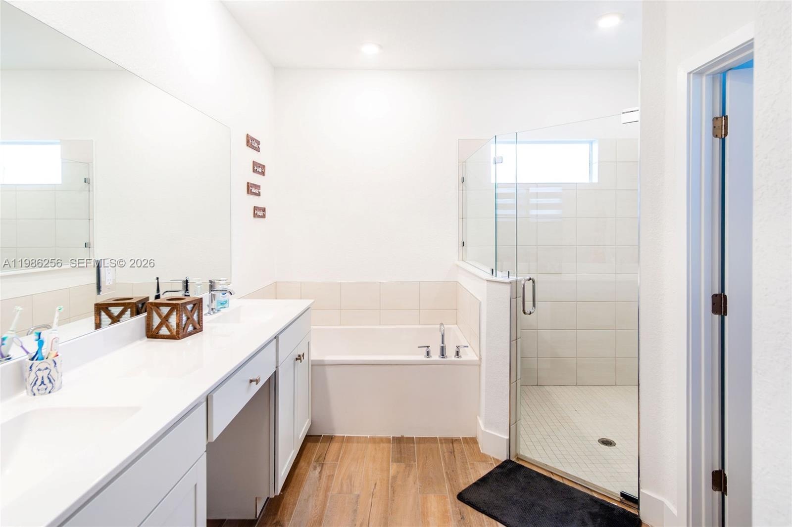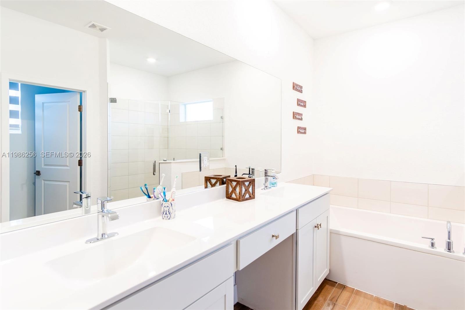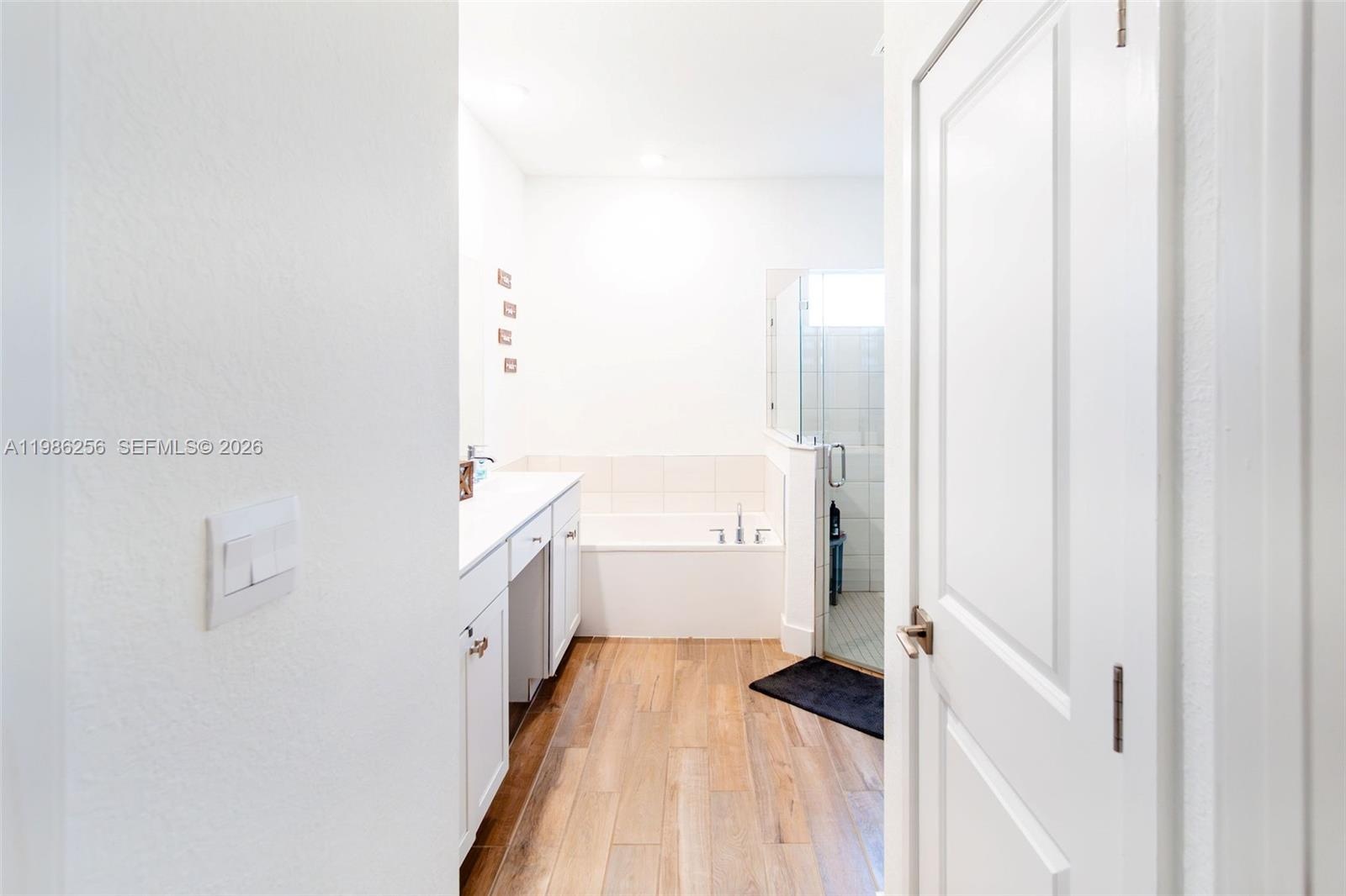 Bright and airy living spaces offer abundant natural light and seamless access to a covered terrace—ideal for indoor/outdoor living. The primary suite includes a generously sized layout with a bathroom featuring dual sinks, soaking tub, and separate shower.
