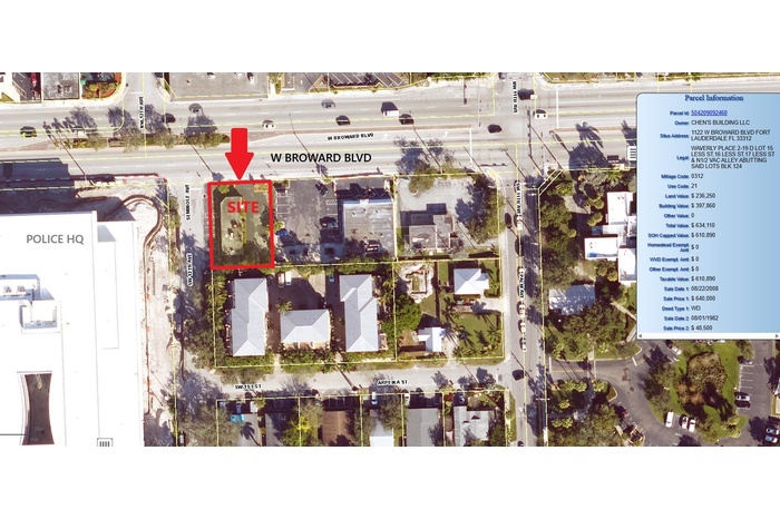 PRIME LOCATION - (B-1) ZONING. Own a highly visible 0.181-acre (7,875 SF) corner site on W Broward Blvd, the primary gateway into downtown Fort Lauderdale. Uses include Automotive, Retail, F&B, Mixed Use, & Office. Frontage of 75 ft along W Broward Blvd & 105 ft along SW 12th St. Directly east of the new $150M Fort Lauderdale Police HQs. Positioned within a rapidly growing corridor leading into downtown, just blocks from nearly 1M approved residential units, plus planned office, retail, and a potential hotel development. Connectivity is unmatched-less than 1 mile from Brightline high-speed rail and under 1 mile to I-95. Operating as Chen's Garden restaurant. Tenant to vacate upon sale. Ideal for 2nd-Gen restaurant or prime redevelopment in one of Fort Lauderdale's most active growth zones.
