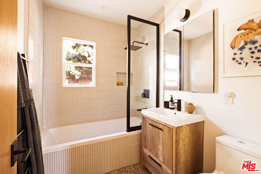Location, Location, Location! A Dreamy Venice Beach Retreat. 2BD/1BA + 324 sq ft. 1 BD/1BA guest house (unpermitted), fully renovated. Just a sun-warmed stroll from the sands of Venice Beach, Erewhon, Gjelina, Abbot Kinney, and the Venice Canals. This completely reimagined 1940s bungalow is the kind of place that makes you want to stay forever. Tucked away off Oakwood Park in one of LA's most beloved neighborhoods and friendliest family-focused communities, this 2-bedroom, 1-bathroom gem plus a charming detached guest house is equal parts laid-back California cool and thoughtfully curated home. Step onto the covered front porch and feel the day slow down. Whether you're sipping morning coffee as the marine layer rolls in or watching the neighborhood come alive in the golden hour, the ideal spot to enjoy the stunning sunsets. This porch sets the tone for everything this home offers. Out front, a cozy seating area invites lingering conversations under the stars, the kind of nights Venice was made for. Stepping inside, a full 2022 renovation brought everything fresh and bright with a modern Scandinavian aesthetic - brand new custom-designed oak kitchen, custom quartz countertops, premium Samsung appliances, white oak floors throughout, new bathroom with Kohler rain shower, deep Hydrospa soaking tub, and Japanese porcelain tiles. The open-concept living, dining, and kitchen area flows together beautifully at the front of the home, filled with natural light and designed for easy living and effortless entertaining. Behind it, both bedrooms and the full bath are tucked quietly away, giving you a lovely sense of retreat and privacy. Step out back, and you'll find your personal paradise: a generous, freshly landscaped, lush backyard, designed by Jay Griffith, is shaded by swaying palms and eucalyptus trees, where a bubbling hot tub waits to melt away the day. The expansive backyard is fully fenced and secured (with no back alley), providing a peaceful escape and retreat-like feel. There is a huge opportunity and ample room for a substantial expansion of the primary residence. The large detached guest house adds endless possibilities, think visiting family, a creative studio, rental income, or your own private escape. This structure is perfectly poised and suited for a high-value ADU conversion offering potential for additional rental income in a high-demand area. This is Venice Beach living at its most romantic, walkable, welcoming, and wonderfully alive. Homes like this don't last long.