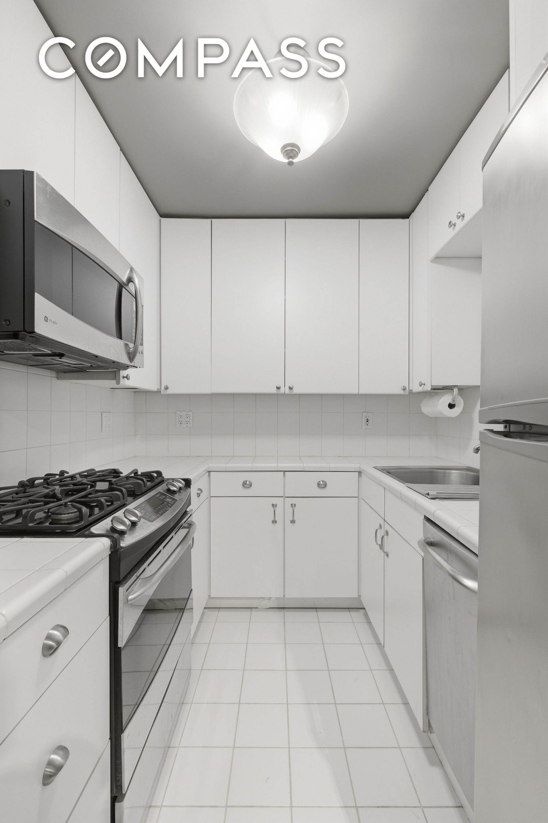 The expansive living/dining area features new flooring and easily accommodates a living space, home office, and dining area. The efficient U-shaped kitchen is equipped with full-size stainless steel appliances, making both cooking and cleanup effortless. The renovated bathroom is in excellent condition, and storage is plentiful with two bedroom closets plus a generous entryway closet.