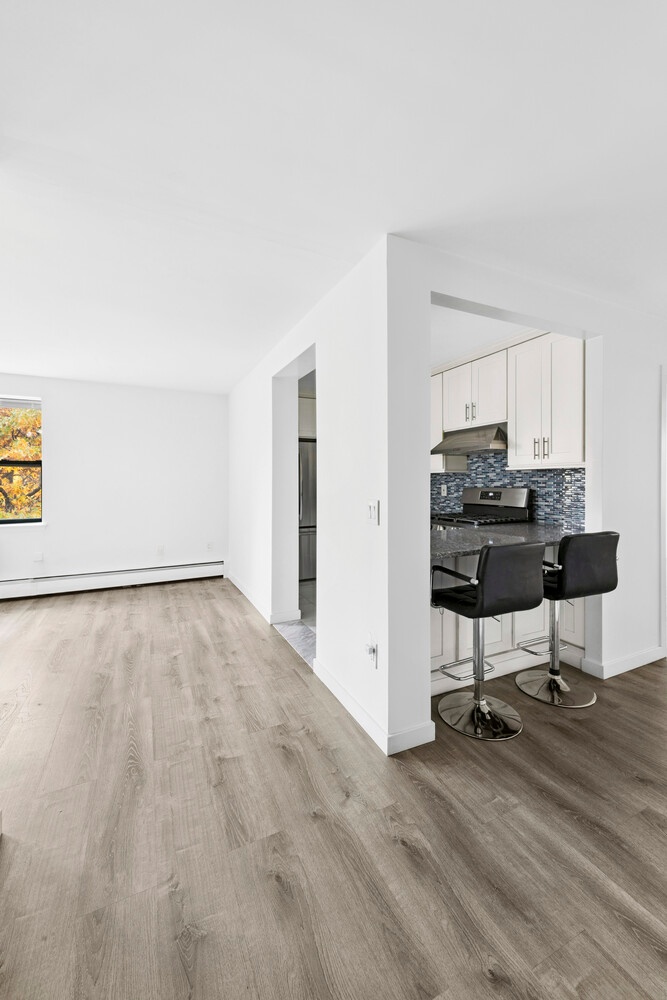 Upon entry, you're greeted by generous room proportions, beginning with a gallery wall and double-deep closets. The open dining and living room layout welcome abundant northwestern light, creating an airy feel. Storage is plentiful, and luxury vinyl flooring combines durability with style.