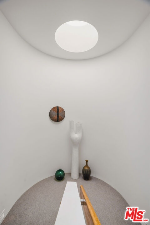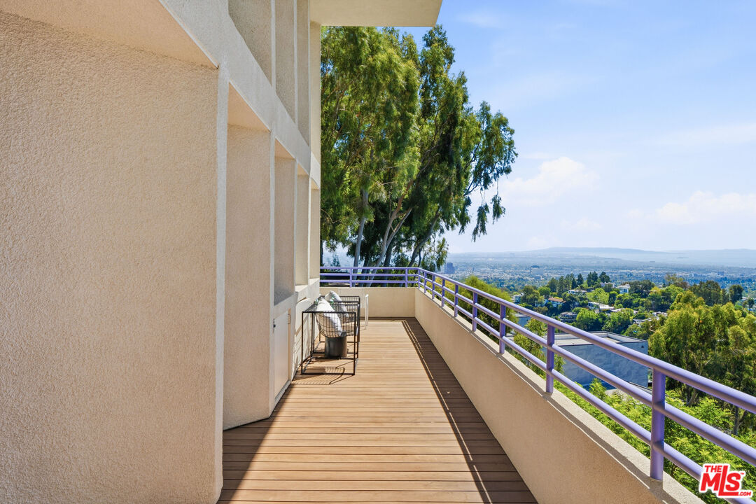 An extremely rare Late Modern masterpiece, completely restored, updated and located in the architecturally significant Crestwood Hills. The Gelber Residence was designed by the esteemed architect, Martin Gelber, FAIA, who was mentored by such architectural giants as, A. Quincy Jones and Richard Neutra. Not only a rare but a beautifully private property with dramatic views of the canyon, city, and ocean. As you step into the house, all the natural light immediately strikes you, the beautiful sculptural design, and the floor-to-ceiling windows all framing the stunning views. To your right is a studio/office space looking out on those views. To the left, you find a den/bedroom, bath, and the ensuite primary bedroom with a fireplace and those forever views. Down the ergonomically designed stairway, an oculus lights the way, to the left is a guest bedroom with its own entrance, deck and hall bath. Turning to the right and opening in front of you is the dining room, living room, conversation area, bar, fireplace, and the galley kitchen, all graced by the custom 18-foot, Clear Heart Redwood ceiling. Surrounding it all is the deck and views. Entertain an intimate group or big party. This property lends itself to both. All cabinetry is custom-made and created to make a simple but powerful architectural statement. The exterior is made of clean angular lines or "fins". This sustainable design is specifically created to keep the house cool in the summer and warm in the winter. Because of this unique energy-conserving element, the property was certified as the first passive solar house in California. In keeping with the sustainable energy-saving properties, the house is also designed to catch cross breezes. Indoors and out, the openness and quiet extends in all directions. Four currents in the Modernism of the 1970's are in perfect balance here. They are the rich, unadorned redwood, the expanses of glass, the striking long lines, and geometry of the house. An unfinished basement allows you to customize for yourself, as does the huge lot allow for additions as you please. If you know, you know.