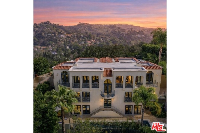 Perched atop a secluded, gated street off Benedict Canyon Drive, this breathtaking Mediterranean estate offers an unparalleled fusion of privacy, sophistication, and panoramic vistas stretching across the canyon and city skyline.Built in 2004, this five-bedroom, seven-bathroom villa spans 4,874 sq. ft. on an expansive 61,393 sq. ft. lot, capturing mesmerizing sunrise-to-sunset views that flood the home with natural light. Offered fully furnished or unfurnished, the estate showcases bespoke designer pieces and exquisite craftsmanship, featuring soaring ceilings, polished stone floors, and custom elements curated by renowned designers, including Cowtan & Tout, Colefax & Fowler, Coraggio, and Zimmer Rohde.Two exquisite Murano crystal chandeliersone evoking ocean waves and the other a cascading golden leafadd an artistic touch to the home's refined aesthetic. Every window and terrace frames sweeping, unobstructed views of lush hillsides and glittering city lights, creating an ambiance of serene grandeur.The open-concept layout flows seamlessly from a grand formal living room with a custom fireplace to a dining area perfect for entertaining. The gourmet chef's kitchen boasts top-tier stainless steel appliances, an oversized island, granite countertops, and a spacious walk-in pantry.The fully remodeled primary suite is a private retreat, complete with cherry hardwood floors, an oversized custom closet, and a spa-inspired bath featuring a steam shower and Japanese soaking tubeach space designed to maximize the breathtaking scenery. Floor-to-ceiling Dupioni silk drapes in the master suite add a rich, luxurious elegance, enhancing the tranquil atmosphere.Three additional en-suite bedrooms offer lavish comfort, while a private office, gym, and media room elevate the home's lifestyle appeal. The resort-style backyard is an entertainer's paradise, featuring a non-chlorine ionized lap pool, spa, fire pit, BBQ, and an outdoor kitchen all set against a backdrop of dramatic canyon and cityscape views.A temperature-controlled 1,200-bottle wine cellar, smart home automation, and a two-car garage with additional gated parking for four more vehicles ensure effortless luxury. Located just minutes from Rodeo Drive's world-class shopping and dining, this estate is a sanctuary of elegance, offering unparalleled views, designer upgrades, and ultimate tranquility.
