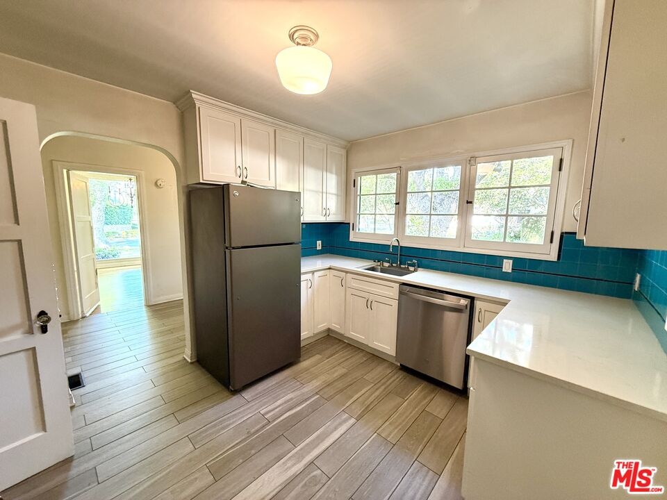 Located on the corner of a beautiful tree-lined street in the heart of West Los Angeles, this charming Spanish home offers space, character, and versatility. The property features a 1,657 SF main house with 3 bedrooms and 2 bathrooms, plus a 450 SF detached guest house, situated on a 6,760 SF lot, for a total of 2,107 SF of living space. The main home showcases original hardwood floors throughout, a bright living room with large windows and a historic fireplace (decorative only), formal dining room, breakfast nook with built-ins, California basement ideal for storage, and a separate laundry room. The detached guest house includes its own full kitchen with quartz countertops, oven/stove, microwave, laminate flooring, and a full bathroom with shower over tub, offering excellent flexibility for guests, extended family, or a home office. The private backyard oasis features a gazebo and herb garden boxes, perfect for relaxing or outdoor gardening. Centrally located on the Westside in the Westwood Charter School District, with close proximity to UCLA, Century City, Beverly Hills, and the vibrant Sawtelle dining district, along with convenient access to the 405 and 10 freeways. Just one block away from Westwood Boulevard's restaurants and shopping! CURRENTLY GETTING PAINTED AND CLEANED UP TO LEASE. THE LISTING PHOTOS ARE TEMPORARY AND NEW ONES WILL BE UPLOADED ONCE COMPLETED.