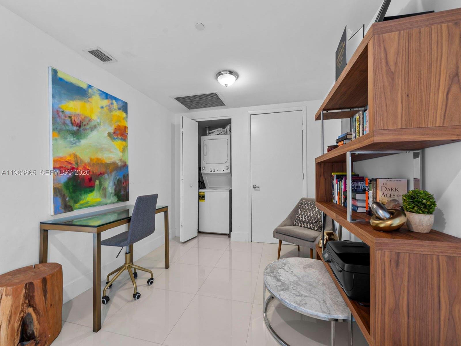 Breathtaking views in a prime location. This beautiful 2-bedroom, 2-bath split floor plan plus a den features tile flooring throughout the unit, a spacious walk-in closet, an open kitchen, and an in-unit washer and dryer. The private balcony invites you to relax while enjoying a unique and stunning water views. Residents can enjoy resort-style amenities including an infinity pool, full-service spa, fitness center, sauna, play area, on-site restaurants, concierge services, and more. Experience comfortable and luxurious living in an unbeatable location.