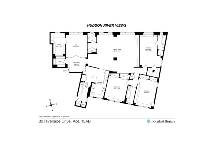Sweeping Hudson River Views High-Floor Prewar 3BR Central Air Allowed