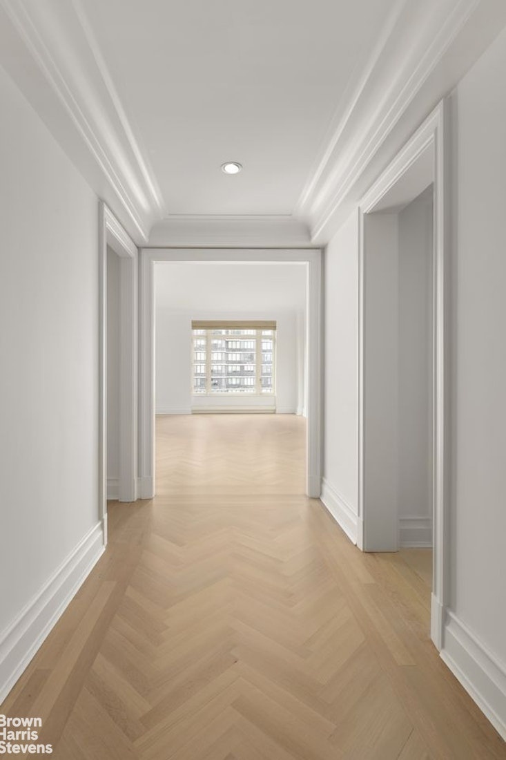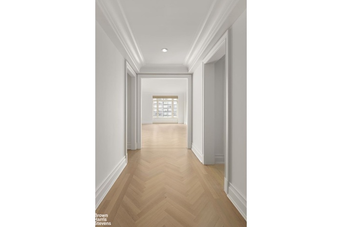 Perched on the 11th floor of the exclusive Tower at Fifteen Central Park West, this beautifully proportioned home exudes timeless sophistication. A semi-private elevator landing leads to the residence and opens into a gracious 13-foot entry gallery. Beyond the gallery, nearly 30 feet of living and entertaining space unfolds, seamlessly accommodating both a generous west-facing living room and a separate, spacious dining area. Oversized picture windows frame the tranquil treetop views and lush landscaped gardens, while high ceilings and brand-new herringbone hardwood floors lend warmth and elegance throughout.