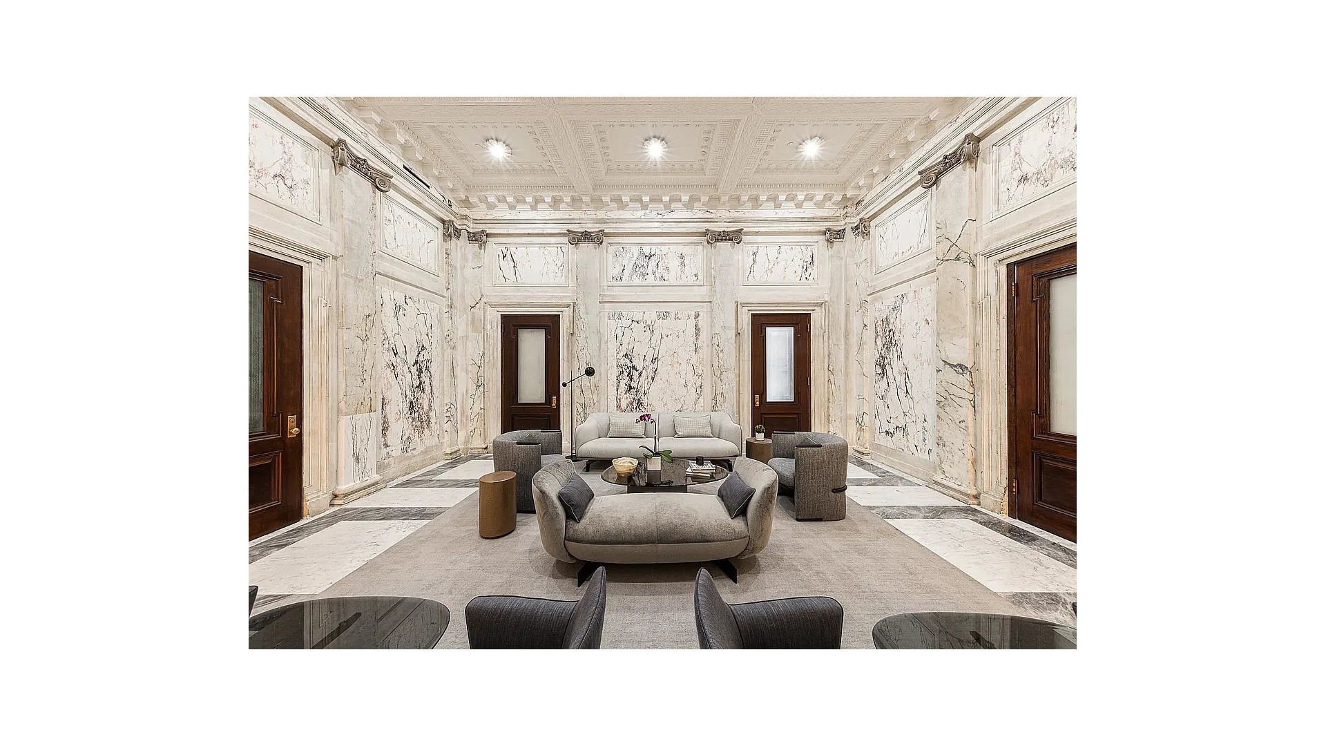 Residents of 108 Leonard enjoy an unparalleled lifestyle with a private drive-in motor reception with valet parking, three attended lobbies with dedicated elevator banks, and over 20,000 square feet of wellness-focused amenities. The landmark building, originally designed by McKim, Mead & White, has been masterfully restored to blend Italian Renaissance Revival architecture with timeless contemporar