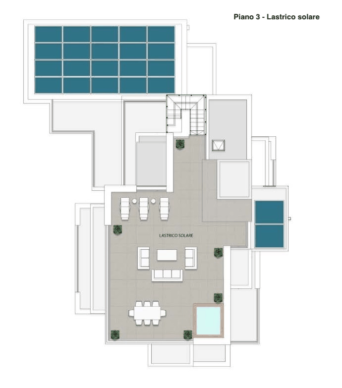 - terraces, private outdoor spaces or rooftop areas