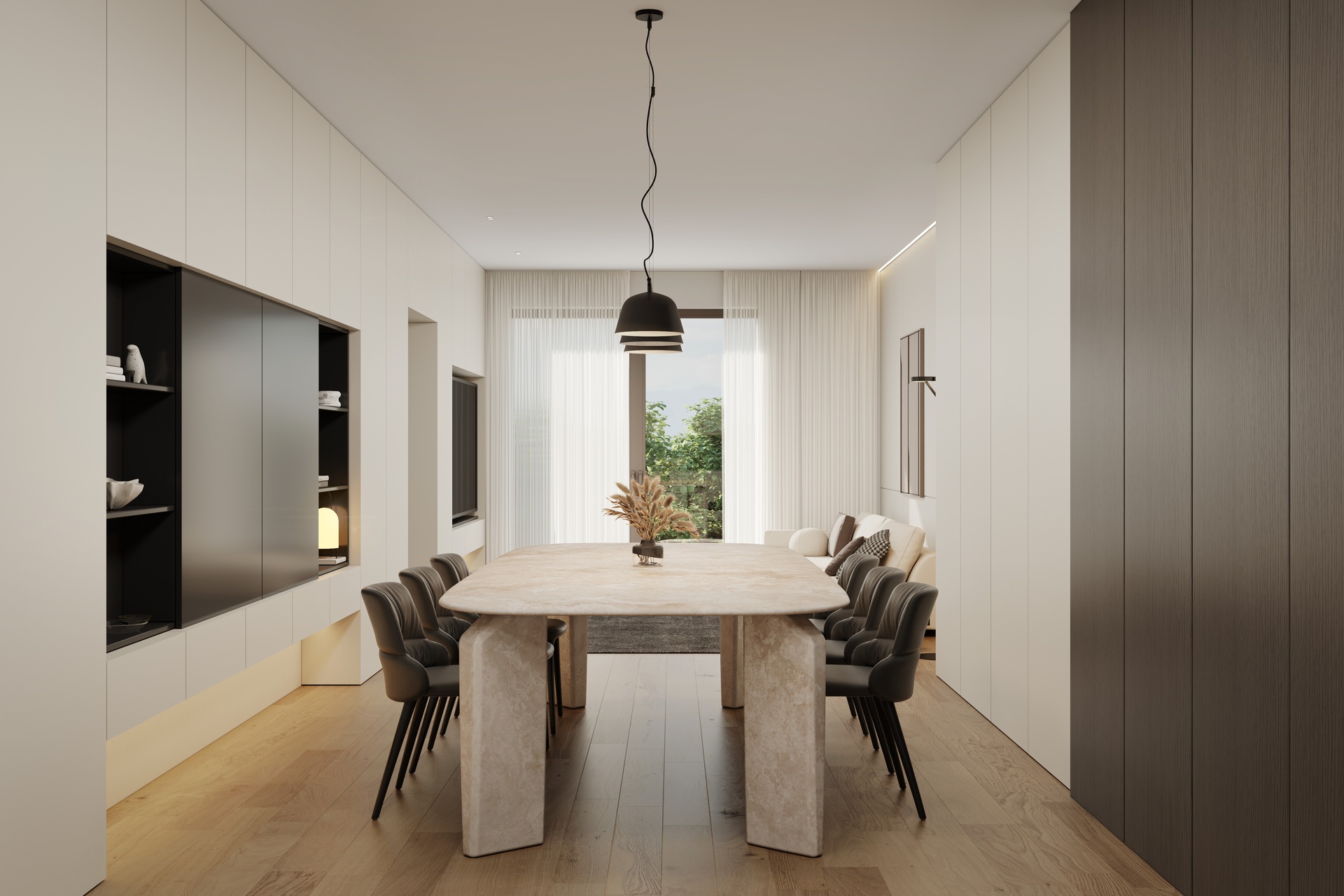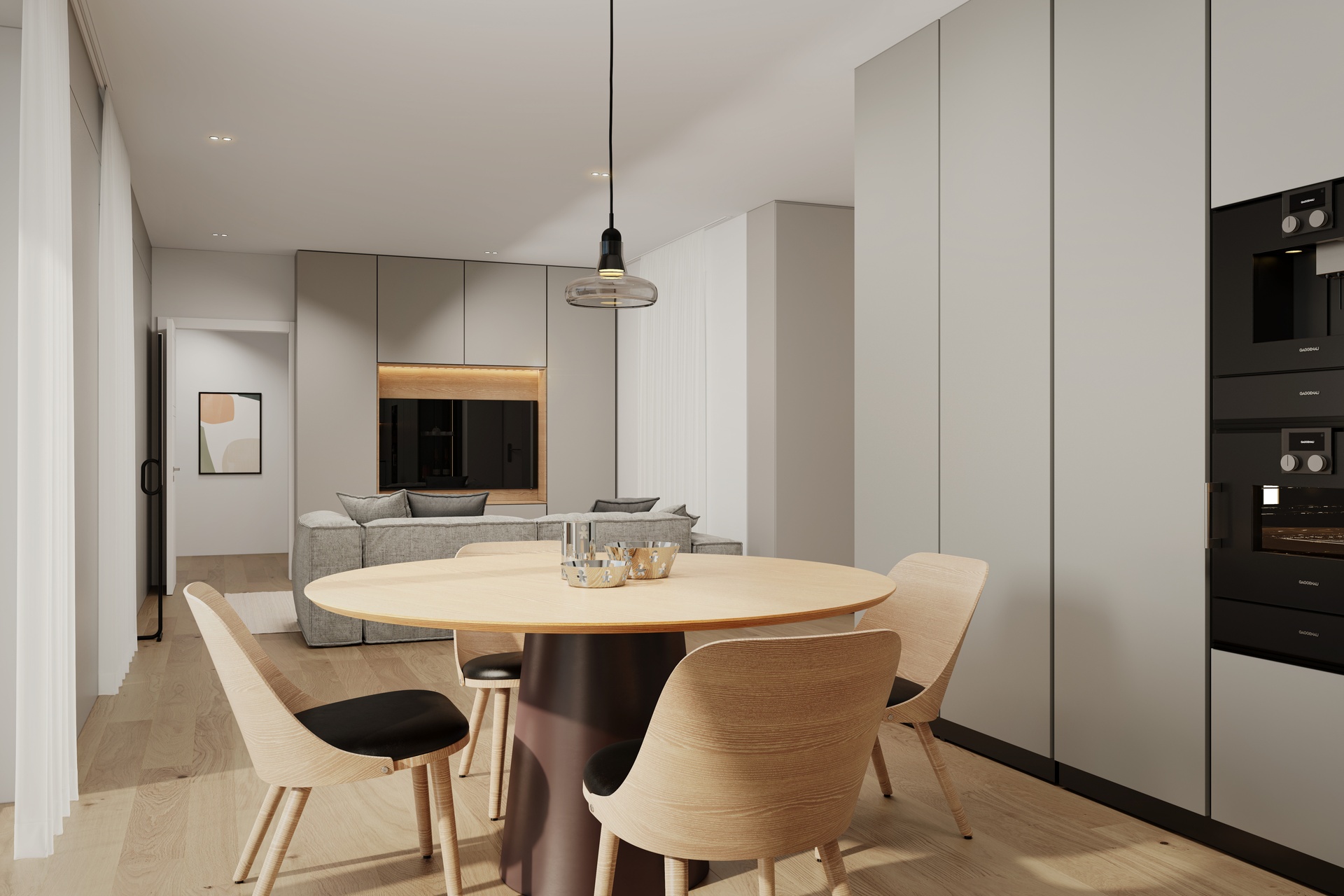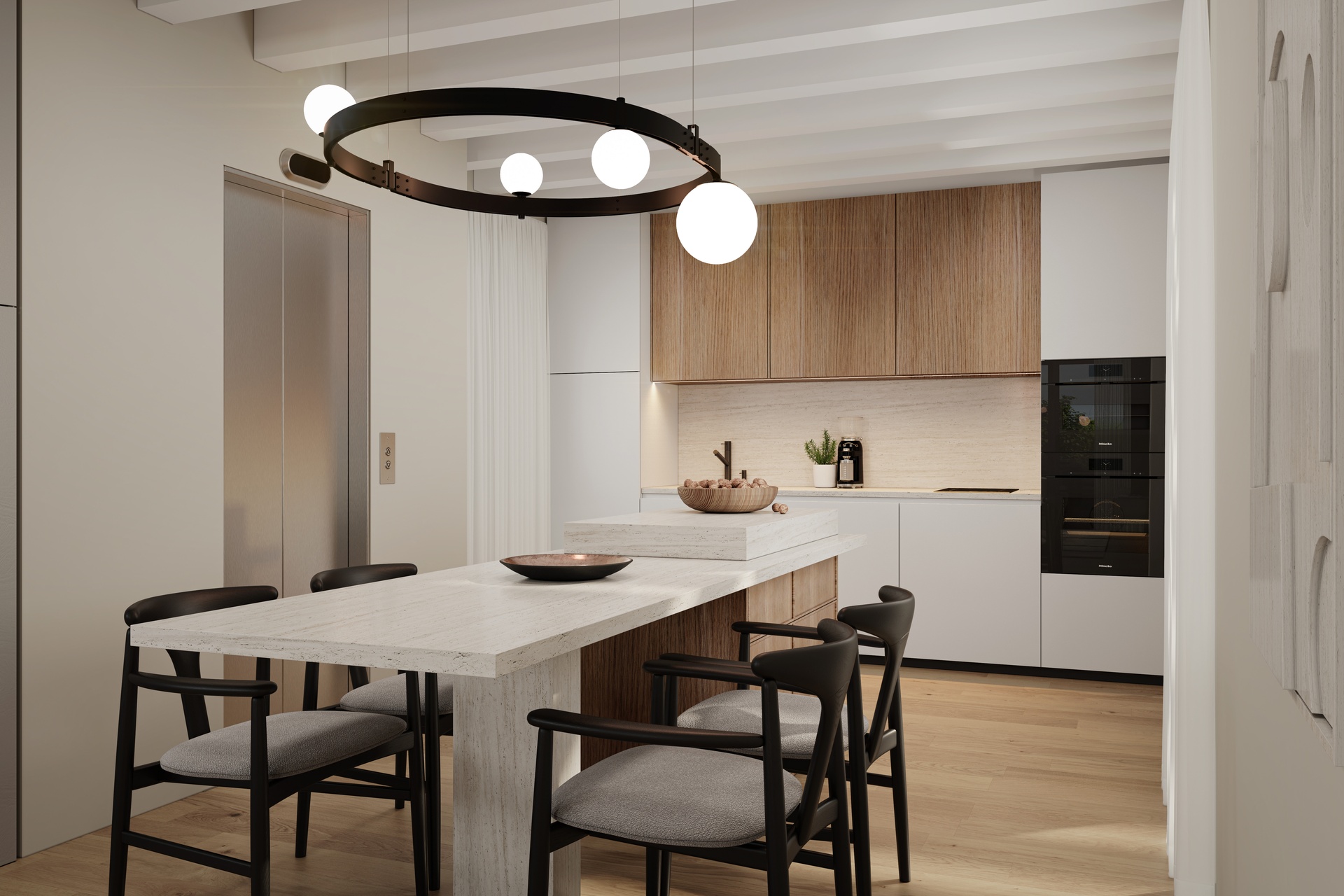 Doors, finishes and detailing are selected to create a coherent, elegant and timeless interior language.