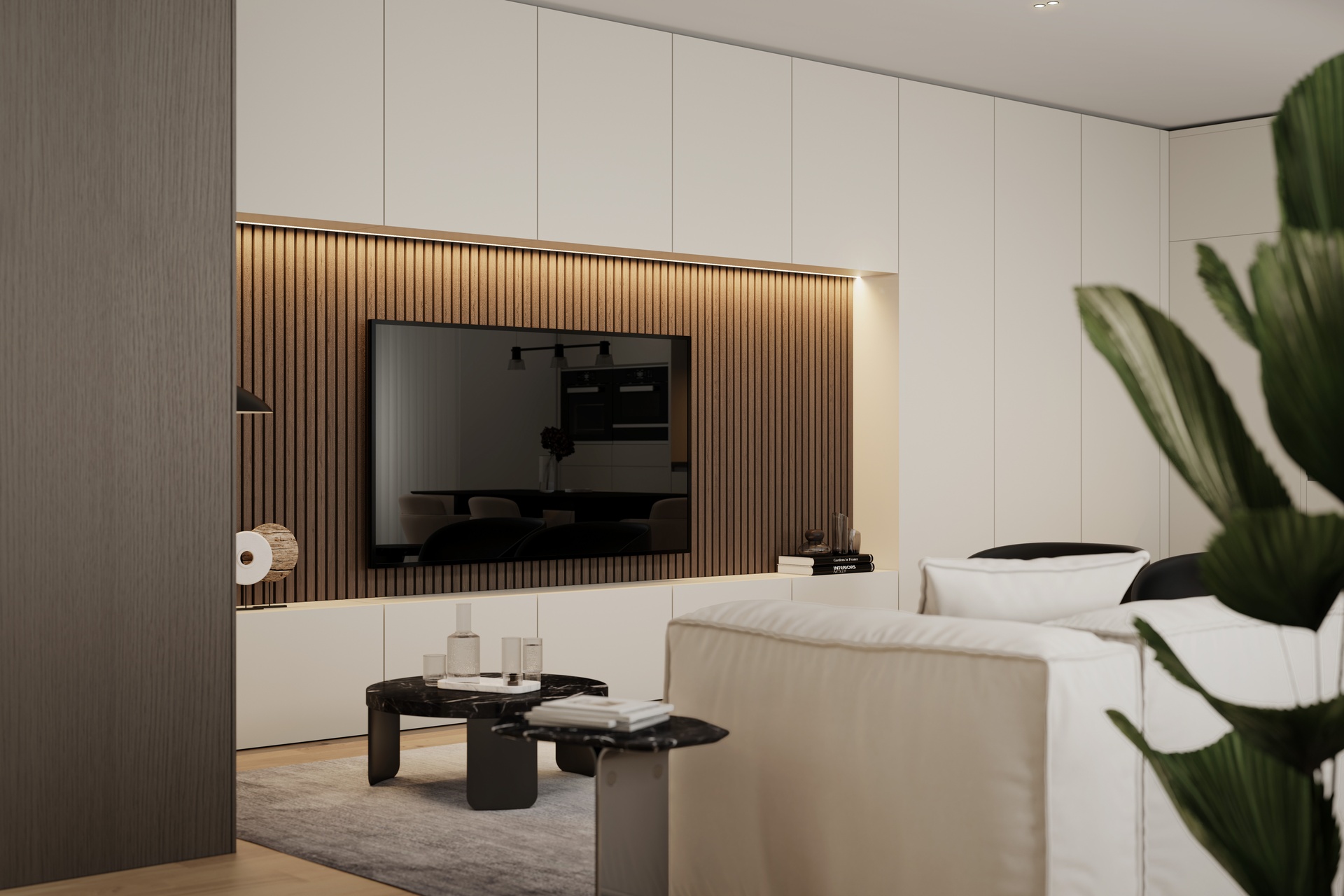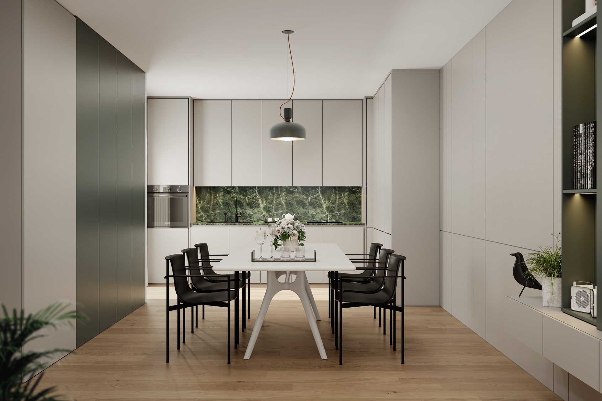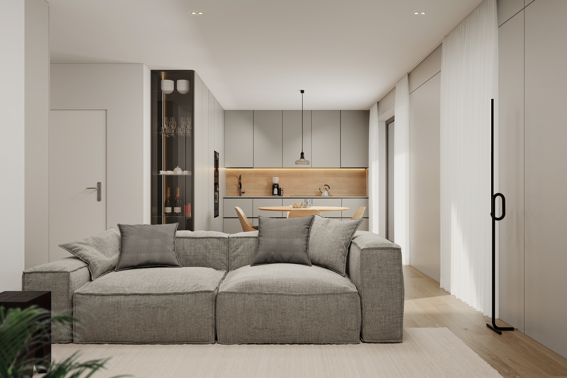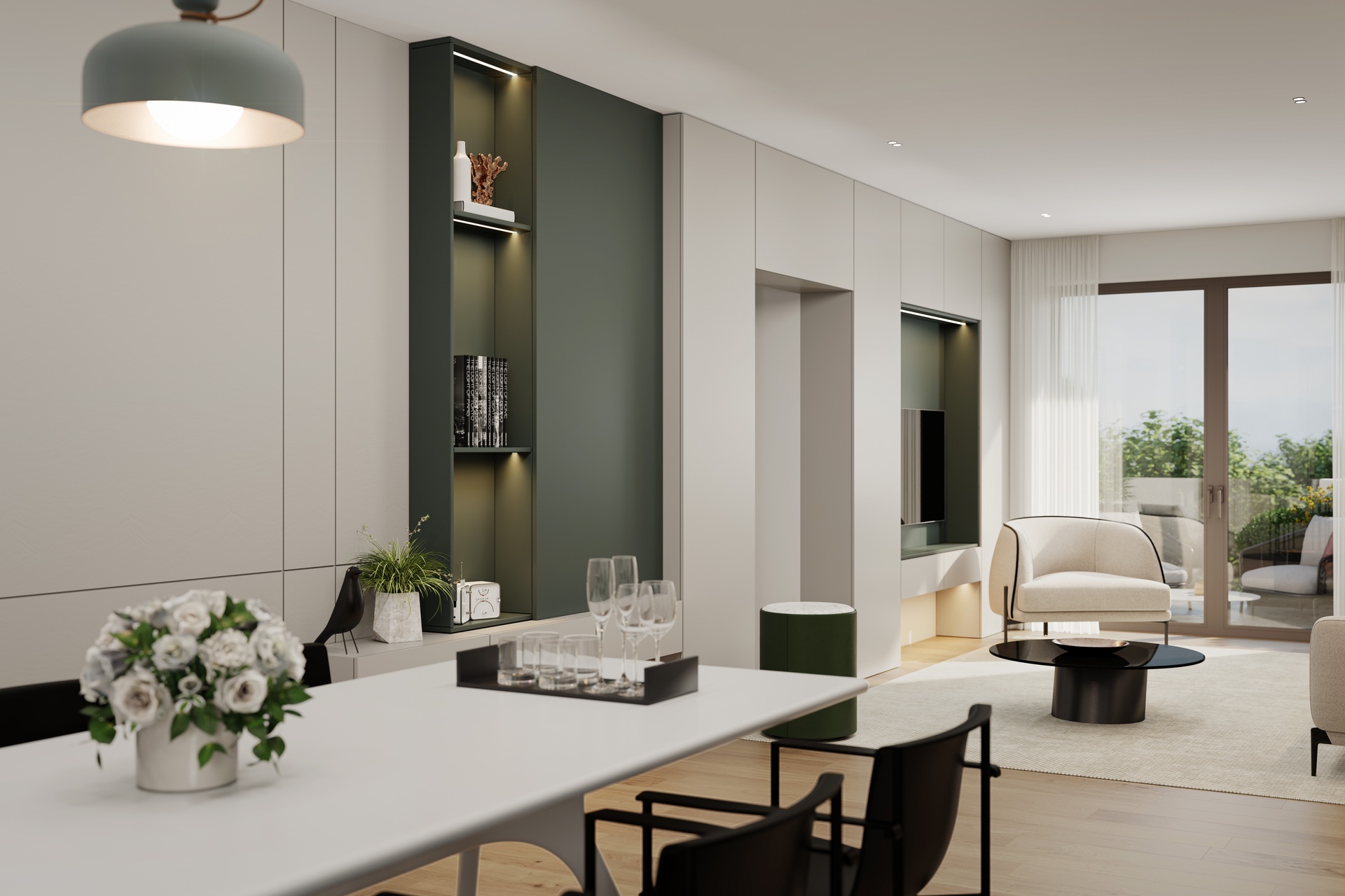 Doors, finishes and detailing are selected to create a coherent, elegant and timeless interior language.