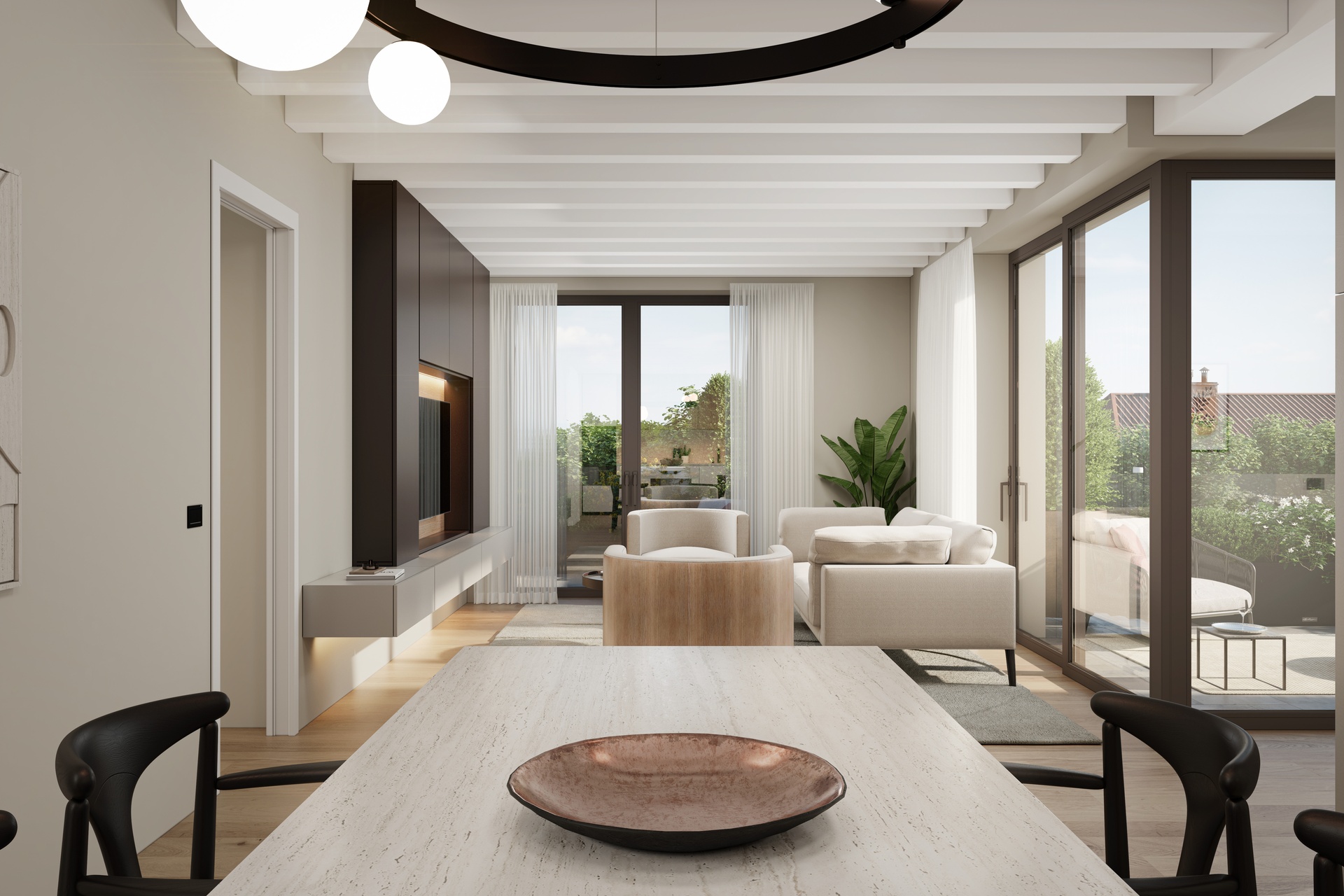 Outdoor areas are designed as a natural extension of the living spaces.