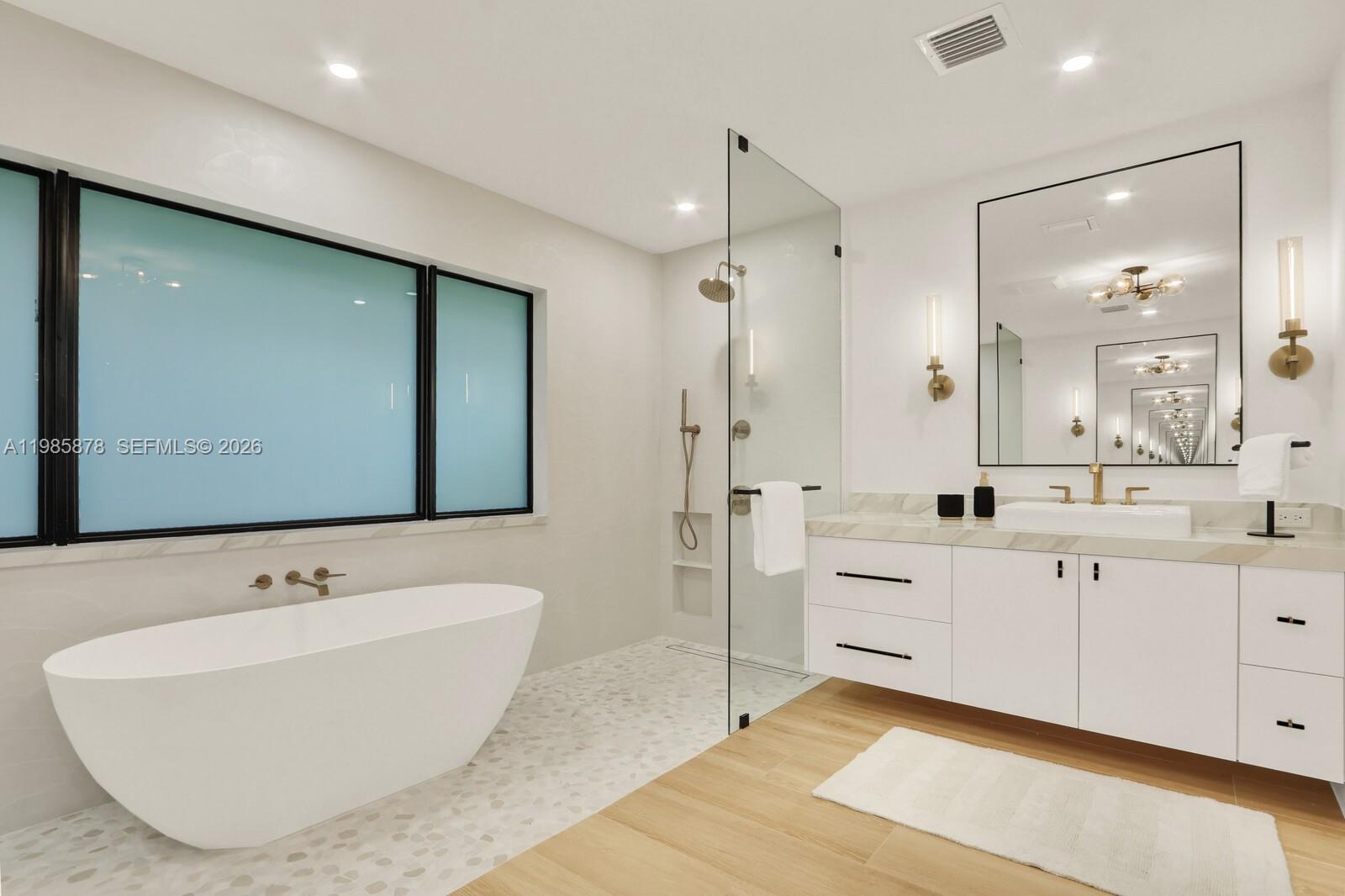 Interior designer completely rebuilt and re-imagined luxury modern coastal residence on a rare half acre lot beneath mature live oaks. Resort-style backyard is one of a kind, showcasing a century-old oak tree, a custom brand new heated pool/spa, summer kitchen with DSC grill, Zephyr hood, and lanai overlooking a professional grade putting/chipping green anchored by two Scottish-style revetted bunkers. Wonderful, thoughtfully designed open floor plan with high end finishes - Subzero/Wolf chef's kitchen, gorgeous wide plank white oak porcelain floors from Portugal, PGT impact windows/doors, and more. The primary suite offers a tranquil retreat with a spa-inspired bath and fully customized walk-in closets. Gated Turtle Creek golf community (membership optional). Unparalleled privacy in a golf setting. Minutes to Jupiter beaches, golf clubs, and waterfront dining. Enjoy peaceful evenings by the fire pit, relax in the hammock or unwind on the swings beneath the magnificent oak tree. This luxury home is all about peace, tranquility, privacy, and entertaining your friends. Move in ready (can be purchased turnkey furnished).