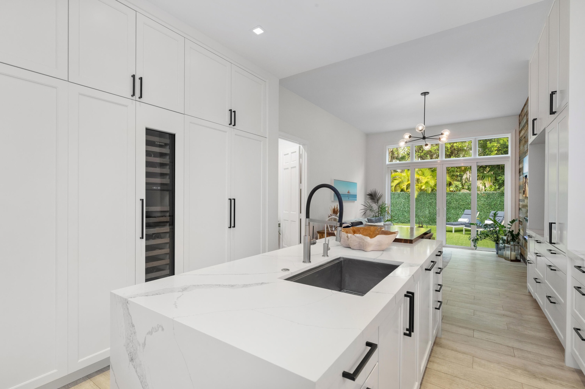 Experience island living at its best in this renovated 4,220SF estate within Grand Bay Estates, Key Biscayne's only guard-gated single-family enclave! This 5BR/5.5BA home features a 2021 roof, 2022 tankless water heaters, 2025 HVAC and full storm protection. The kitchen shines with Quartz counters & Sub-Zero, Wolf, & Miele appliances, plus a dual-zone Sub-Zero wine fridge. The versatile layout includes all en-suite bedrooms, staff quarters, & a private in-law suite with its own entrance. A rare find for Key Biscayne is the climate controlled 2-car garage plus golf cart garage. The backyard oasis offers a heated saltwater pool, summer kitchen & retractable awnings, perfect for entertaining! HOA covers lawn care, 24hr security, pool maintenance, pest control, plus private park & playground! For the ultimate experience in luxury and privacy, look no further!