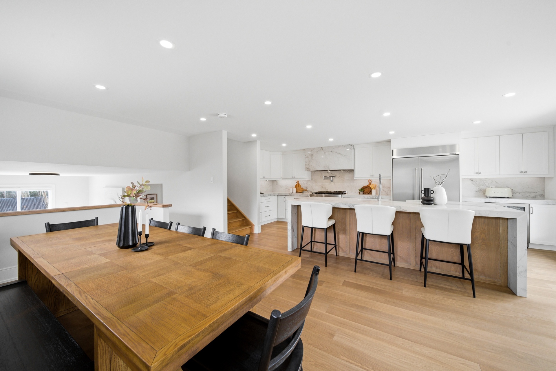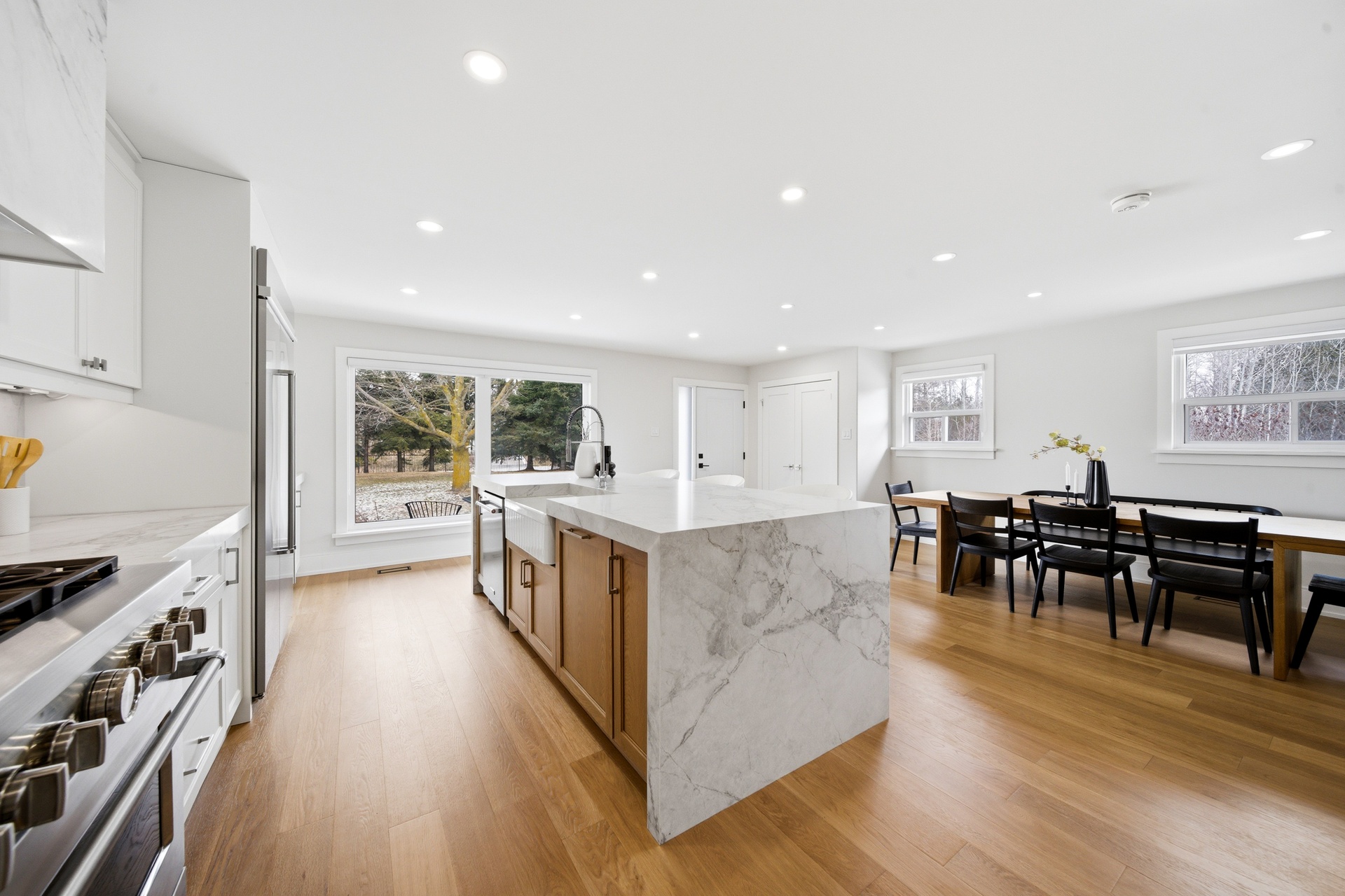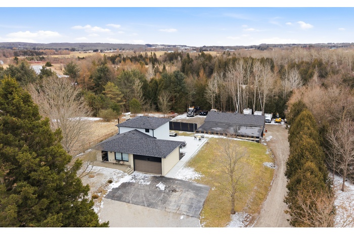 A rare and versatile offering in the heart of King, just minutes to Highway 400. This fully reimagined 4-bedroom backsplit has been completely renovated down to the studs, delivering a seamless blend of modern design and turnkey living. No detail has been overlooked, featuring all-new plumbing, electrical, and high-end designer finishes throughout. The custom kitchen is a true showpiece, complete with quartzite countertops, statement hood fan, professional-grade built-in appliances, and an oversized island with farmhouse sink. White oak hardwood floors flow throughout, complemented by new trim, doors, and bespoke millwork. Enjoy a stunning new fireplace, a fully finished basement with wet bar, and a dedicated built-in wardrobe room. The exterior has been equally upgraded with a new roof, windows, and doors, plus a large concrete patio wrapping the backyard and leading to a separate side entrance, ideal for added flexibility. What truly sets this property apart is the impressive ~2,500 sq ft detached workshop at the rear. Recently rebuilt, it features its own HVAC system, plumbing with two washrooms, new 200 Amp Electrical Service, a finished boardroom-style office, and a kitchenette, perfect for business owners, contractors, or hobbyists seeking a live-work opportunity. An exceptional property offering endless possibilities in a prime King location.