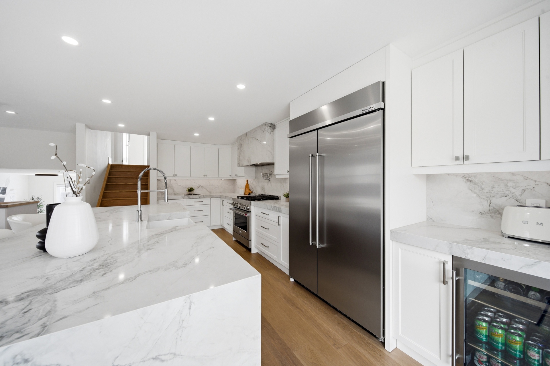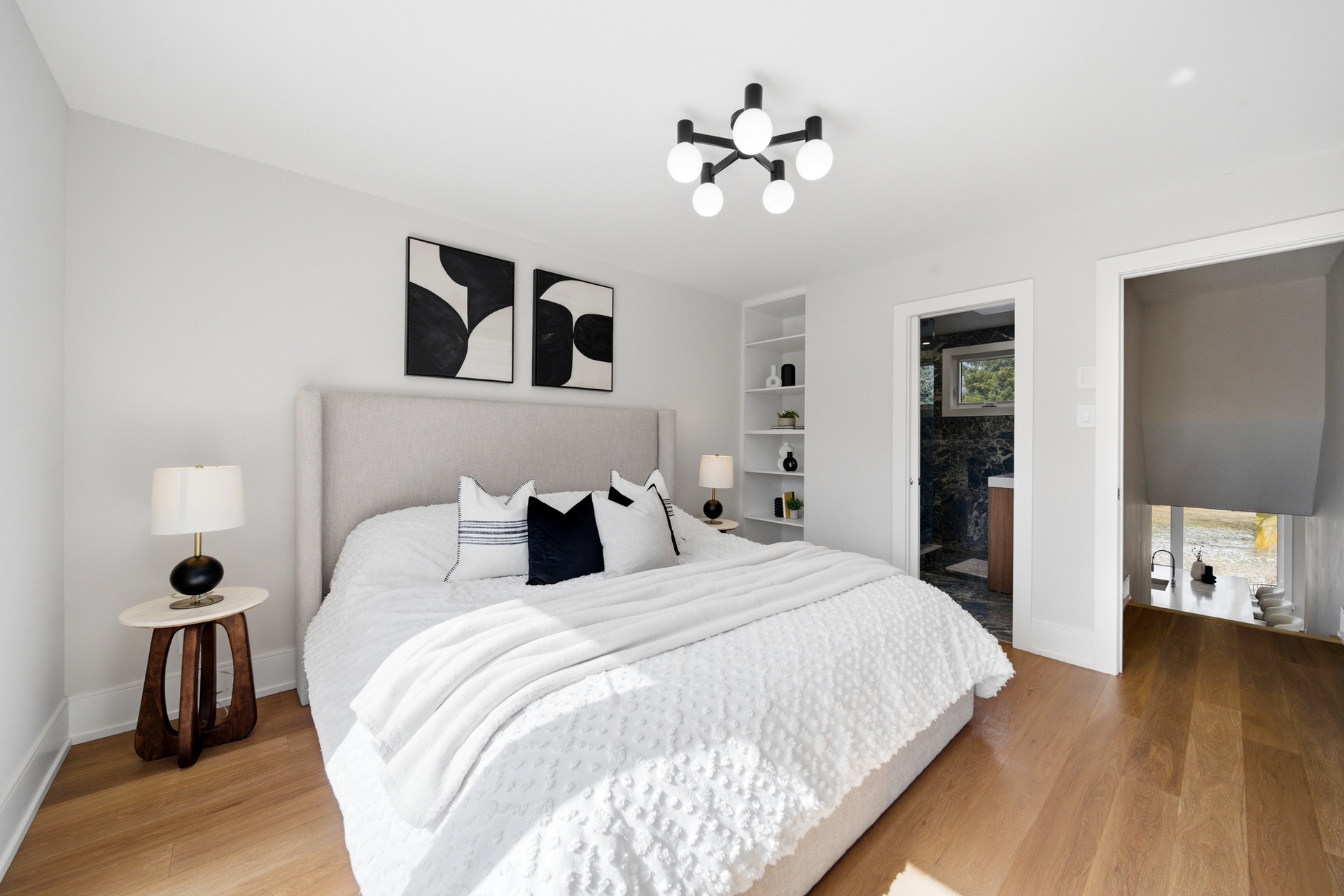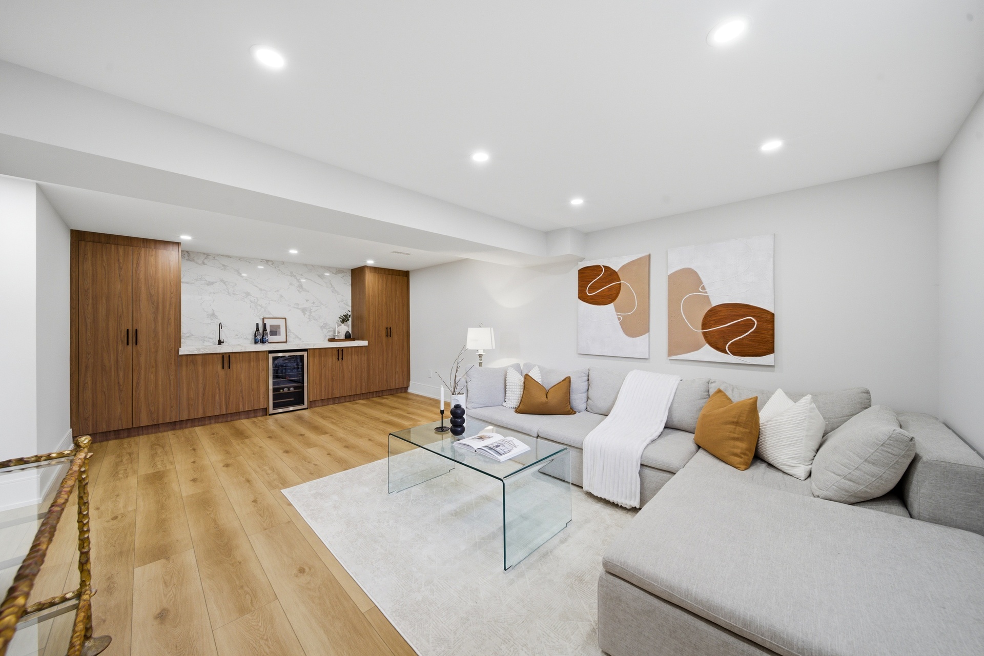 A rare and versatile offering in the heart of King, just minutes to Highway 400. This fully reimagined 4-bedroom backsplit has been completely renovated down to the studs, delivering a seamless blend of modern design and turnkey living. No detail has been overlooked, featuring all-new plumbing, electrical, and high-end designer finishes throughout. The custom kitchen is a true showpiece, complete with quartzite countertops, statement hood fan, professional-grade built-in appliances, and an oversized island with farmhouse sink. White oak hardwood floors flow throughout, complemented by new trim, doors, and bespoke millwork. Enjoy a stunning new fireplace, a fully finished basement with wet bar, and a dedicated built-in wardrobe room. The exterior has been equally upgraded with a new roof, windows, and doors, plus a large concrete patio wrapping the backyard and leading to a separate side entrance, ideal for added flexibility. What truly sets this property apart is the impressive ~2,500 sq ft detached workshop at the rear. Recently rebuilt, it features its own HVAC system, plumbing with two washrooms, new 200 Amp Electrical Service, a finished boardroom-style office, and a kitchenette, perfect for business owners, contractors, or hobbyists seeking a live-work opportunity. An exceptional property offering endless possibilities in a prime King location.