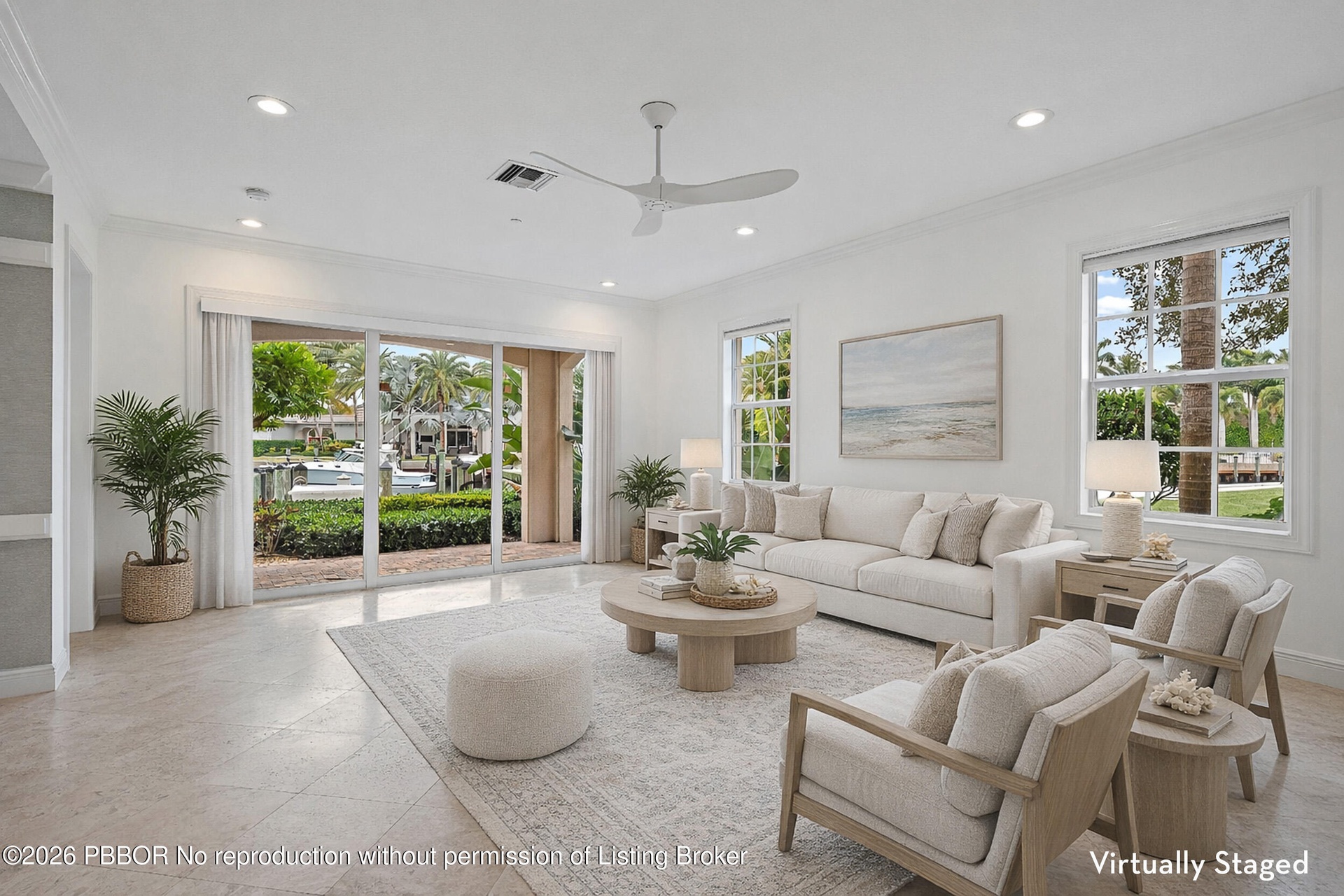 Imagine walking out your door and onto your boat, with a private dock for up to a 65-foot boat directly outside this first-floor waterfront home. This move-in-ready residence is located inside the highly desirable, manned-gate boating community of Frenchman's Harbor, offering direct ocean access and an effortless coastal lifestyle. This beautiful first-floor unit offers easy, stair-free living with immediate access to your dock--perfect for loading up, heading out, or enjoying the water anytime you want. Frenchman's Harbor is a boutique waterfront community designed for those who value privacy, security, and an active boating lifestyle. Residents enjoy a resort-style waterfront pool, private boardwalk, and beautifully maintained tropical grounds. Tastefully updated and thoughtfully laid out, the home includes a two-car garage and comfortable, inviting living spaces. By boat or by car, the location is hard to beat - just minutes from the beach, inlet, waterfront restaurants, and shopping. Boat slips accommodating up to 65 feet are extremely hard to come by in the area; if you're looking for a home for you and your boat, this is a must-see.