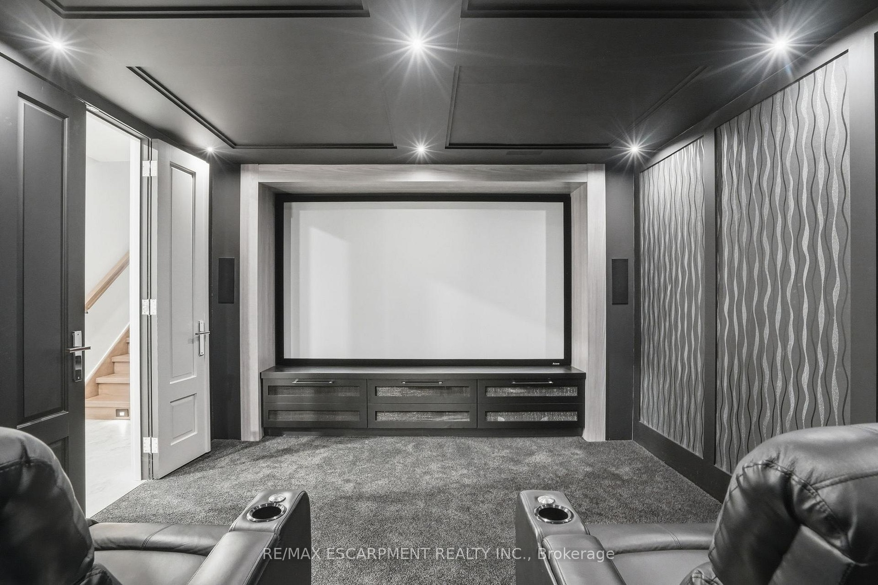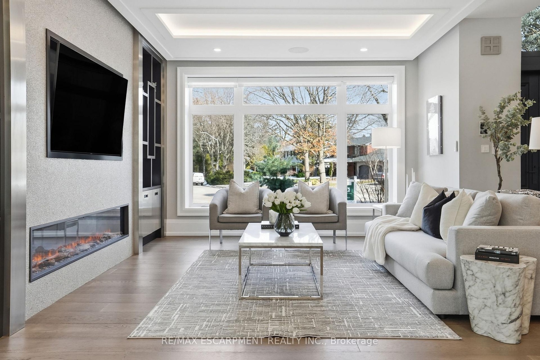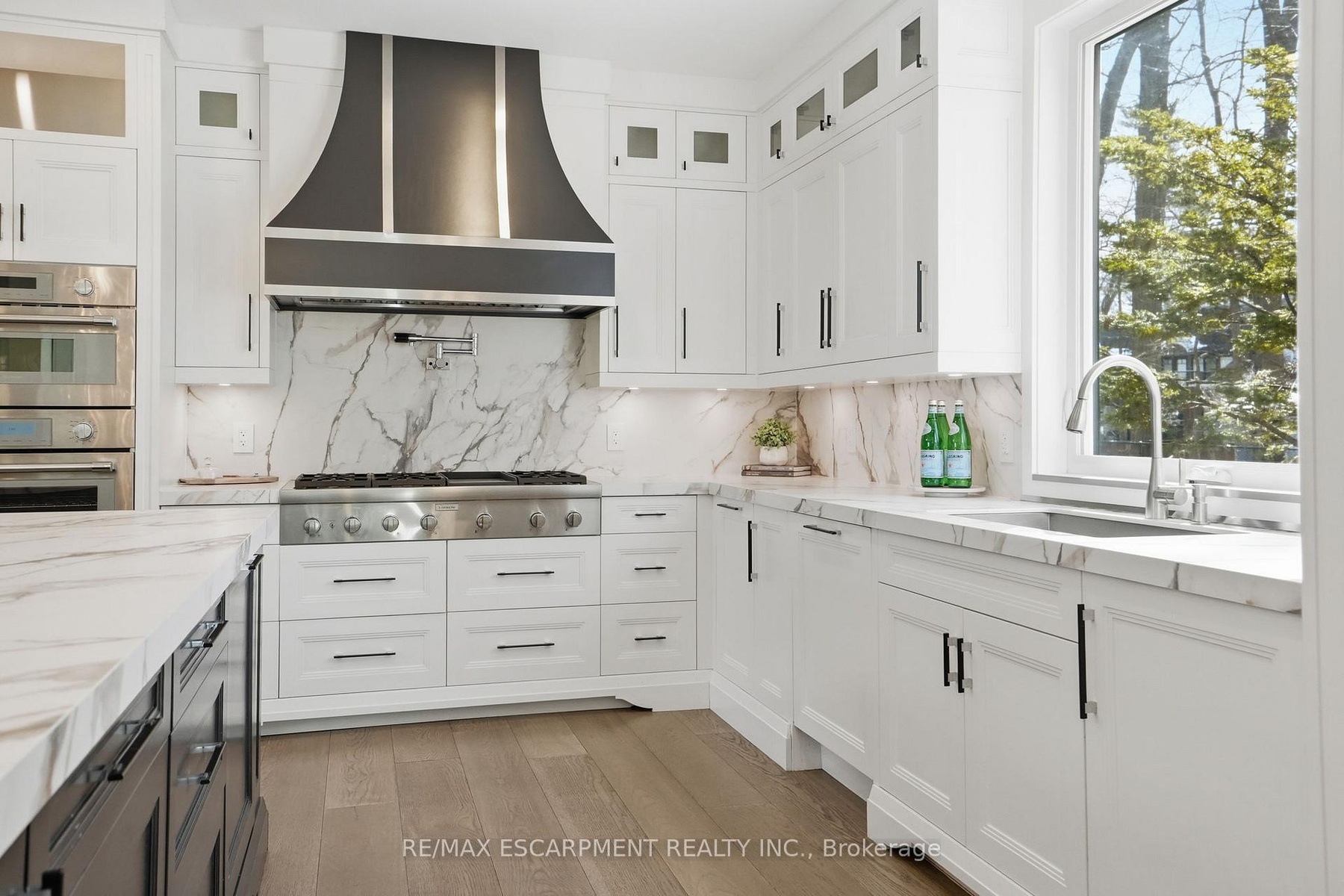 A striking expression of modern design and refined living, this custom-built residence is ideally located in the prestigious Whiteoaks of Jalna enclave of Lorne Park. Showcasing exceptional craftsmanship and curated finishes throughout, the home blends bold architectural presence with thoughtfully designed, highly functional living spaces. A dramatic double-height foyer with approximately 20 ft ceilings creates a grand sense of arrival, leading into open-concept principal rooms defined by wide plank hardwood flooring, custom millwork, and a sleek linear fireplace. The chef-inspired kitchen serves as the heart of the home, featuring full slab porcelain surfaces, integrated Thermador appliances, a pot filler, and an oversized island designed for both everyday living and entertaining. The upper level offers spacious, well-appointed bedrooms, including a luxurious primary retreat with a custom walk-in closet and spa-inspired ensuite complete with a freestanding tub, rainfall shower with body jets, and a private steam sauna. The fully finished lower level is designed for elevated entertaining, featuring a custom wet bar, wine display, media lounge, and a private home theatre with tiered seating for eight. Outdoors, professionally landscaped grounds offer a private, tree-lined setting with a tiered deck, glass railings, hot tub area, and seamless indoor-outdoor flow, ideal for both relaxation and hosting. A rare opportunity to own a thoughtfully designed modern home in one of Mississauga's most sought-after neighbourhoods, just minutes to top schools, parks, and the lake. Luxury Certified.