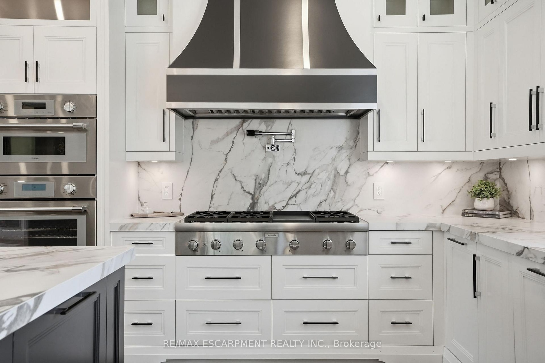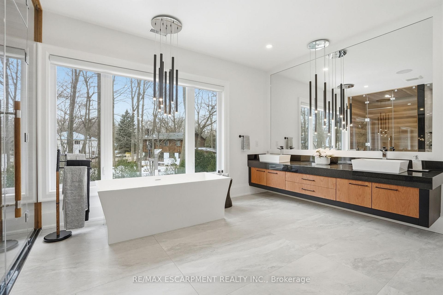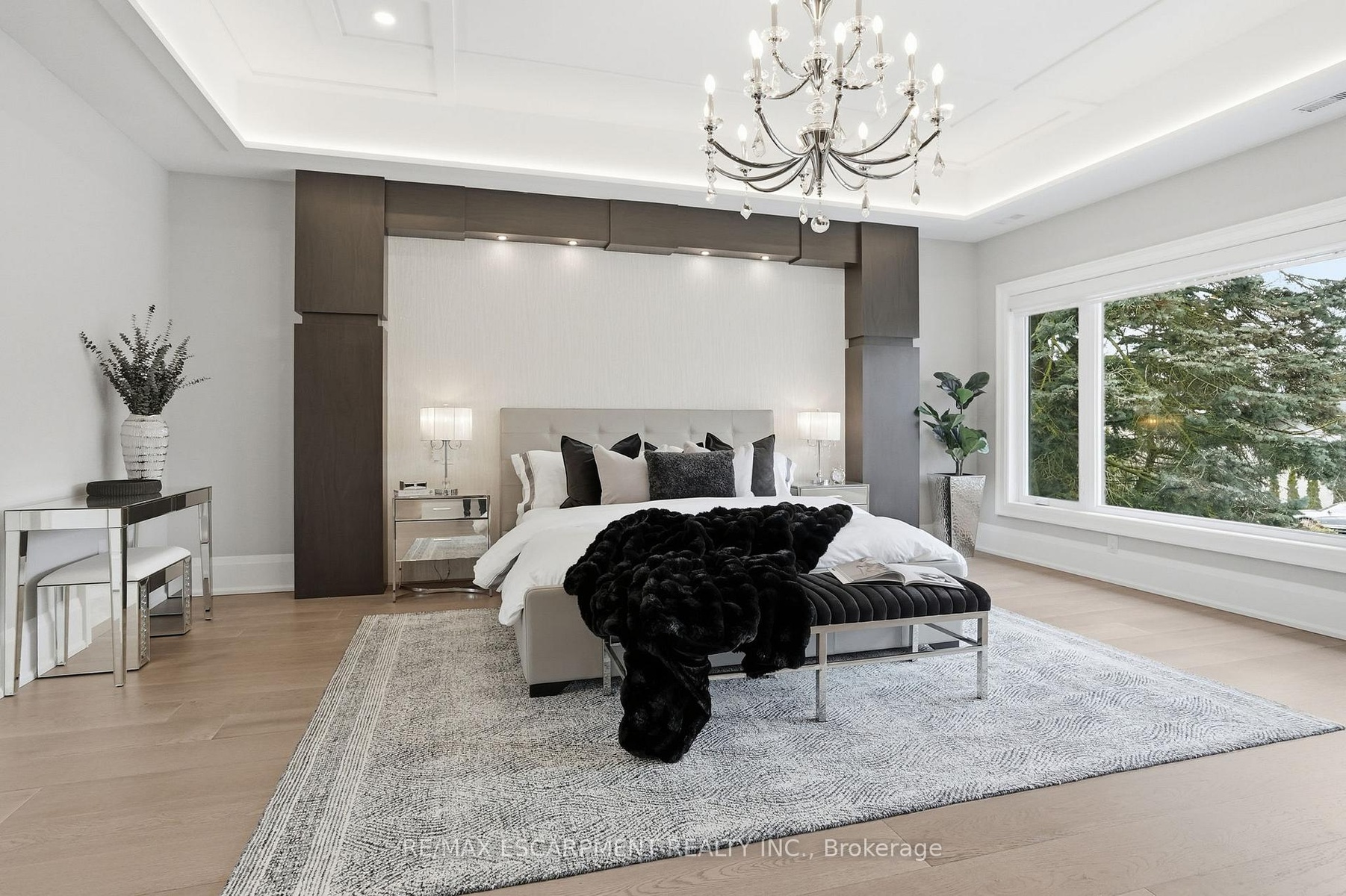 A striking expression of modern design and refined living, this custom-built residence is ideally located in the prestigious Whiteoaks of Jalna enclave of Lorne Park. Showcasing exceptional craftsmanship and curated finishes throughout, the home blends bold architectural presence with thoughtfully designed, highly functional living spaces. A dramatic double-height foyer with approximately 20 ft ceilings creates a grand sense of arrival, leading into open-concept principal rooms defined by wide plank hardwood flooring, custom millwork, and a sleek linear fireplace. The chef-inspired kitchen serves as the heart of the home, featuring full slab porcelain surfaces, integrated Thermador appliances, a pot filler, and an oversized island designed for both everyday living and entertaining. The upper level offers spacious, well-appointed bedrooms, including a luxurious primary retreat with a custom walk-in closet and spa-inspired ensuite complete with a freestanding tub, rainfall shower with body jets, and a private steam sauna. The fully finished lower level is designed for elevated entertaining, featuring a custom wet bar, wine display, media lounge, and a private home theatre with tiered seating for eight. Outdoors, professionally landscaped grounds offer a private, tree-lined setting with a tiered deck, glass railings, hot tub area, and seamless indoor-outdoor flow, ideal for both relaxation and hosting. A rare opportunity to own a thoughtfully designed modern home in one of Mississauga's most sought-after neighbourhoods, just minutes to top schools, parks, and the lake. Luxury Certified.