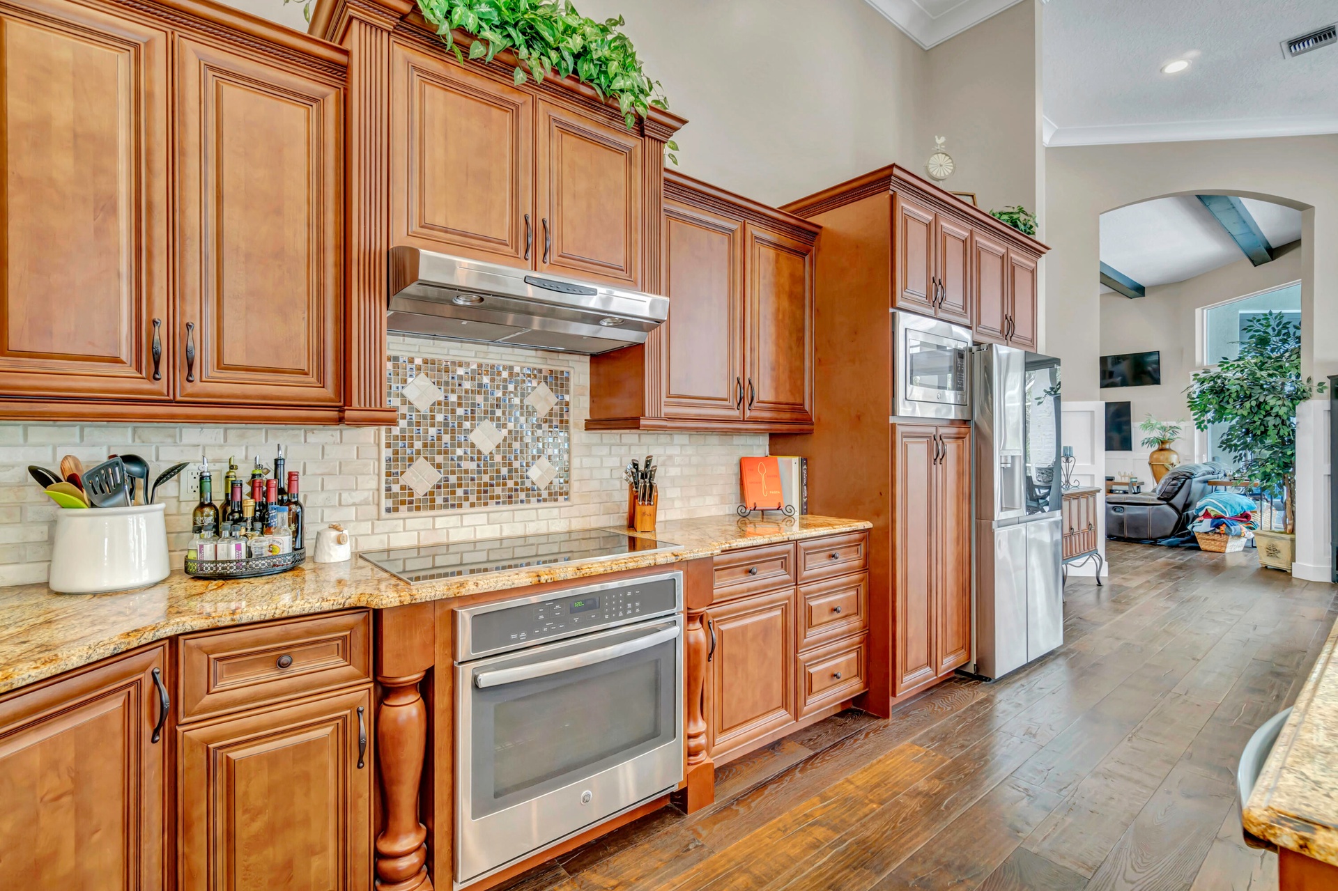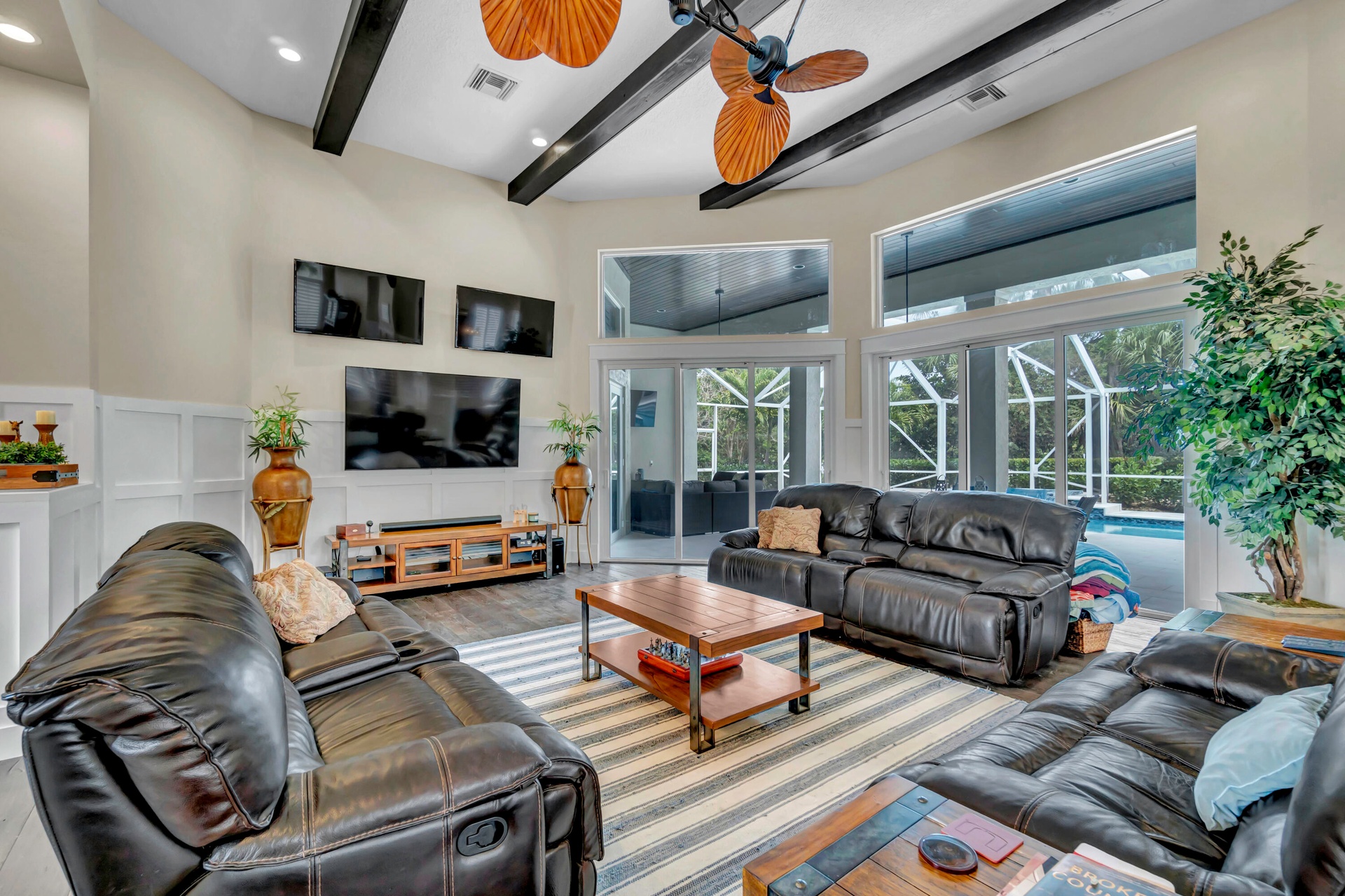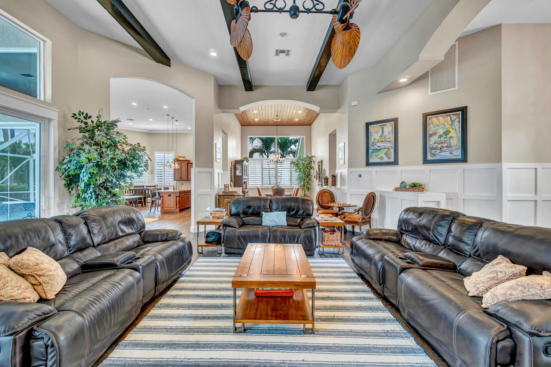 Over 5600 sq ft of perfection with a 5 car garage!! Newly renovated (2025) home offers 4 bedrooms, 5 bathrooms, PLUS office, GUEST HOUSE (Mother in Law suite) with kitchenette and mini split AC! Beautiful custom wood floors in living areas plus tongue and groove wood ceilings in several areas as well as wood beams in the living room. The entire home is protected by hurricane rated impact glass windows and doors, updated and refreshed marble patio/pool with screen enclosure, updated bathrooms, custom closets, gutters, garage space for 5 cars with circular paver drive, batten board throughout living areas, extra fridge in the laundry room and backs to the 4th green of Mayacoo Lakes CC (optional membership). Enjoy the golf course view while lounging in your heated pool and spa. Breakers West offers 2 optional private Golf Clubs both offering golf, tennis and social memberships. 2 manned guard gates, roaming security and roaming first responders. 15 min to PBIA and Downtown WPB. 15 minutes to Wellington's Equestrian Facility. 20 min to Palm Beach island and world class beaches. 5 min to Kings Academy, 15 min to Oxbridge Academy, 20 min to Rosarian Academy & Palm Beach Day Academy.