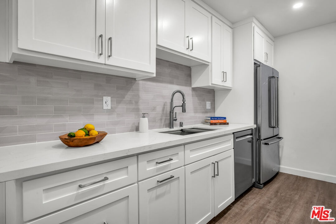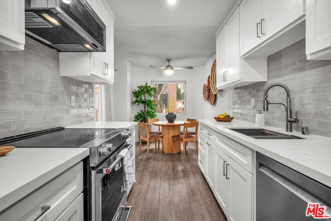 FABULOUS newly remodeled condo. Extra spacious feel with open floorplan and breezy flow. No expense spared throughout. Gourmet kitchen with all new stainless-steel appliances. Italian tile backsplash. Pantry. Custom cabinetry for XL storage. Cooling ceiling fan over dining area. Wonderful luxury flooring. Custom tiled gas fireplace. Cabinets throughout. Primary suite is wonderfully large with huge double closets. PRIVACY too from neighbors. Bathroom is all new with Italian tiled walk-in shower. Cool tile flooring. WASHER/DRYER too! Lovely outdoor patio. And EX STORAGE cage too. Parking is gated and nice size. HOA has EQ Ins. Close to Montana. And the wonderful Palisades Park for strolls, morning jog or just taking in the ocean breezes.