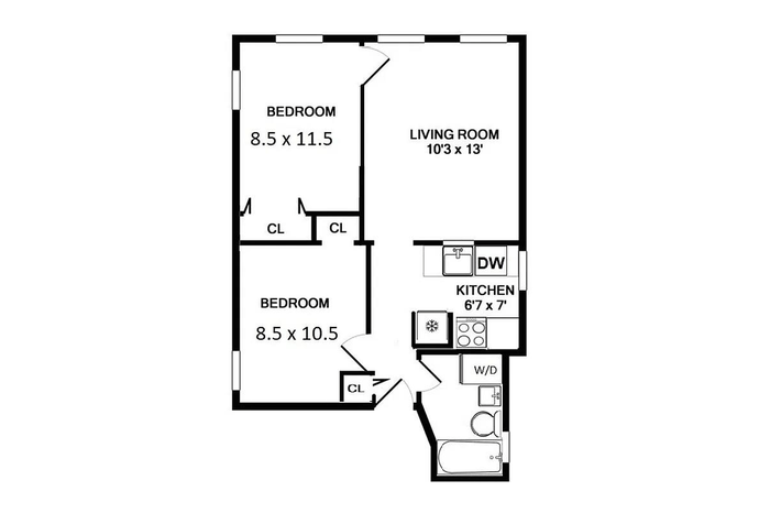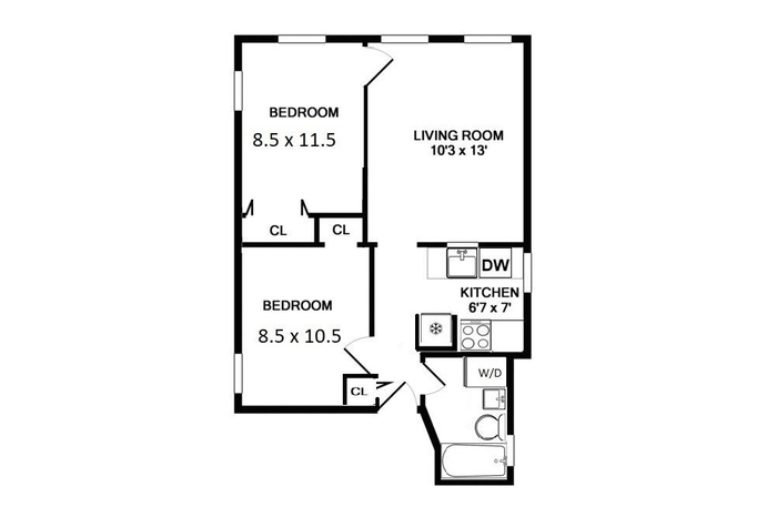 Welcome to Apartment 2A, an efficient two-bedroom, one-bath residence located just one short flight up. Featuring high ceilings, just under 10 FT, windowed bath and kitchen equipped with stainless steel appliances including dishwasher. Apartment has 7 windows throughout.