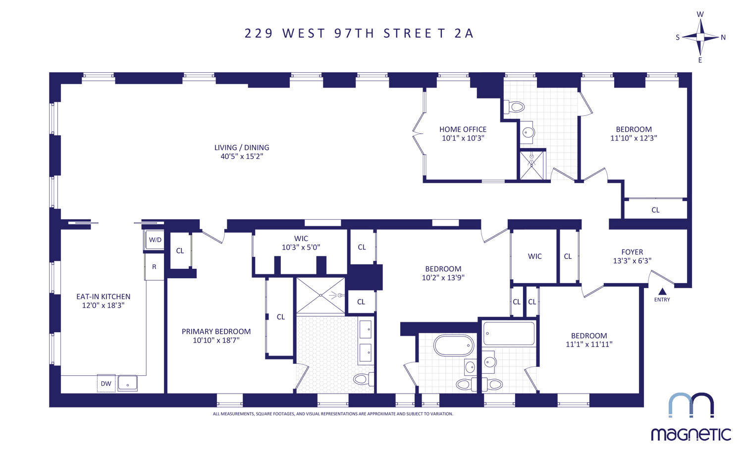 This sprawling urban sanctuary boasts a suite of high-end upgrades, while also enjoying soaring ceilings, original exposed brick accents, and a breathtaking 50-foot-long living and dining expanse. With 17 oversized windows across three exposures, the home is bathed in natural light, highlighting the rich hardwood floors and grand proportions.Recent bespoke upgrades: Windowed and oversized eat-in kitchen-gut-renovated last year with premium finishes-along with abundant storage and a suburban-sized, vented washer/dryer for ultimate convenience; a brand-new, impeccably designed primary bath and secondary bath, while all the baths feature contemporary fixtures and aesthetics. A private home office has also been integrated into the layout. Finally, the floor plan has been expertly optimized to maximize storage, ensuring every square inch of this grand home is as functional as it is beautiful.