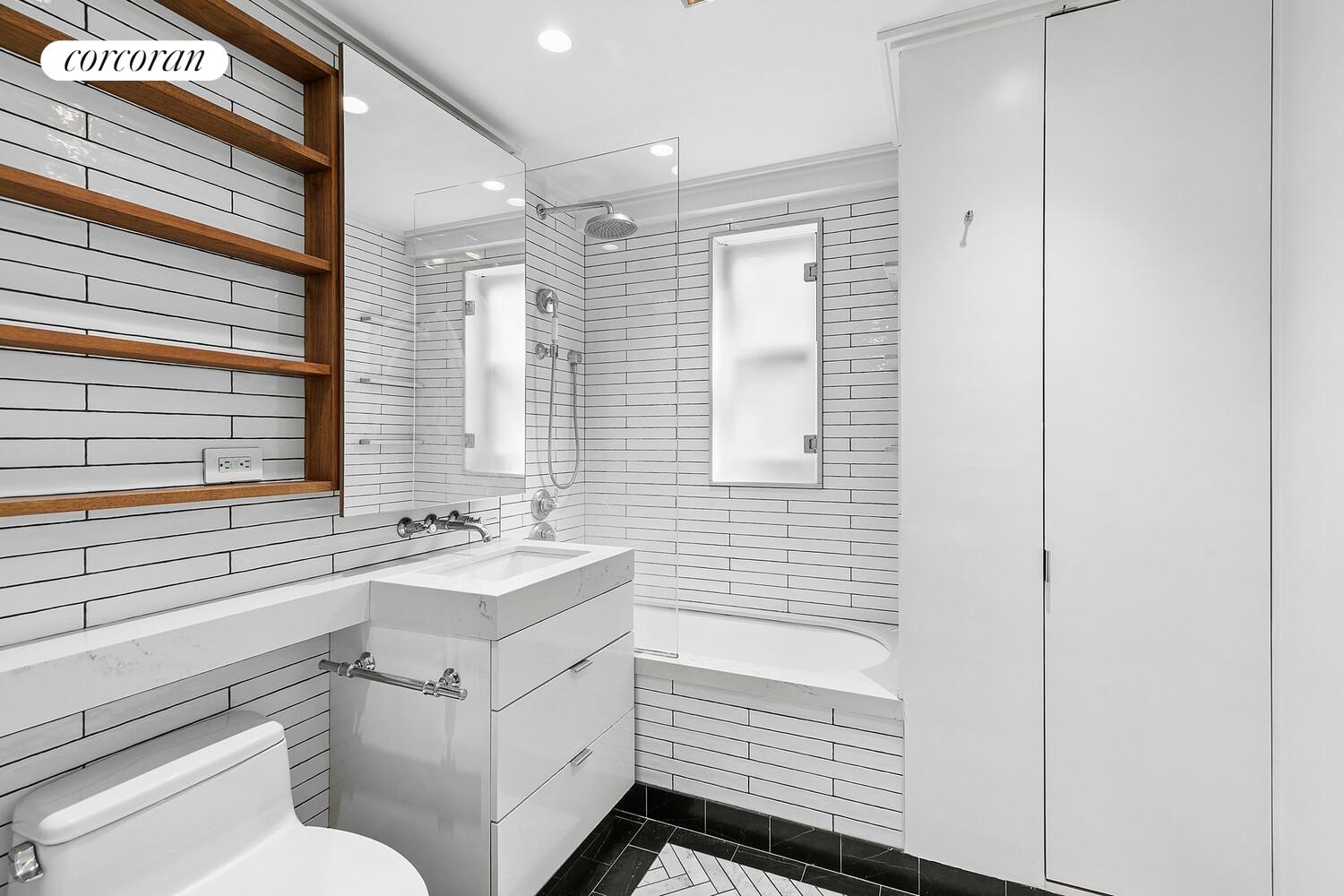 The windowed bathroom is beautifully renovated, offering a spa-like experience with its oversized layout and convenient closet. The unit is equipped with brand-new windows, and washer and dryers are permitted, adding to the convenience of this home.