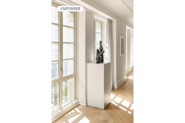 With nearly 50 feet of prime Fifth Avenue frontage, Residence No. 7 is a meticulously crafted three-bedroom, four-and-a-half-bath home that spans an entire floor. A private elevator opens into a gracious entry gallery, leading to a grand great room framed by 7'6" Wausau windows and French inswing doors, flooding the space with natural light.