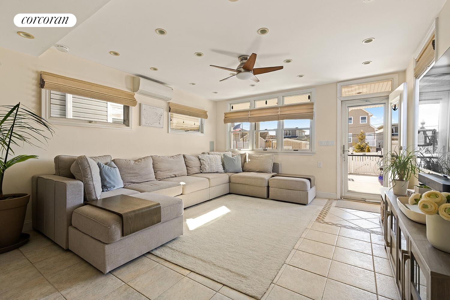 Located at 210 Roxbury Avenue, this sun-filled residence greets you with an open floor plan and an abundance of natural light. The spacious living room, lined with windows, flows seamlessly into a beautifully renovated kitchen featuring granite countertops with seating, high-end appliances, and ample storage. A separate dining room sits just off the kitchen, while a versatile sunroom/den provides direct access to a large rear deck. A convenient half bath completes the main level.