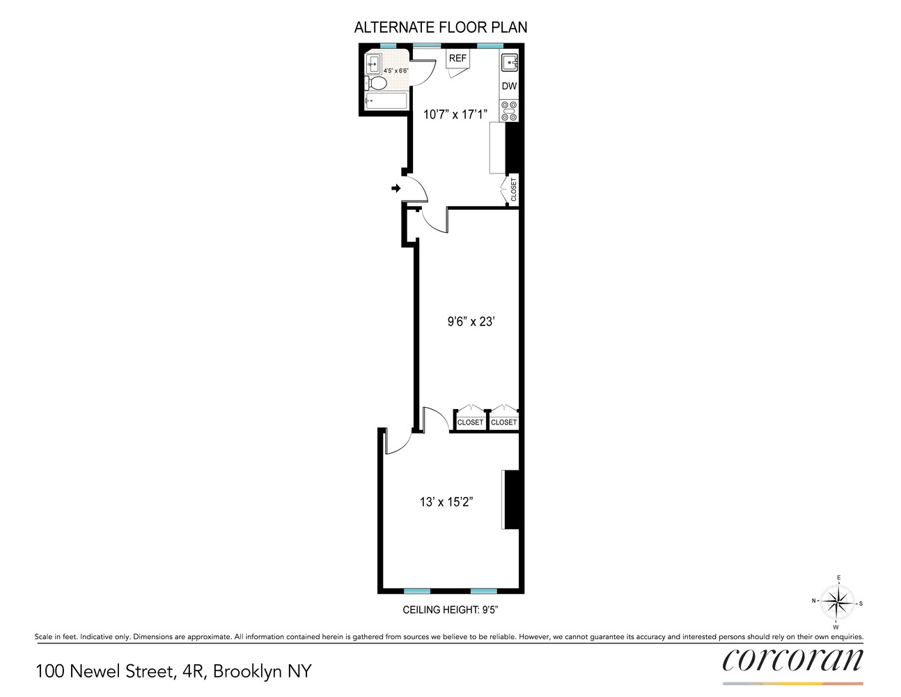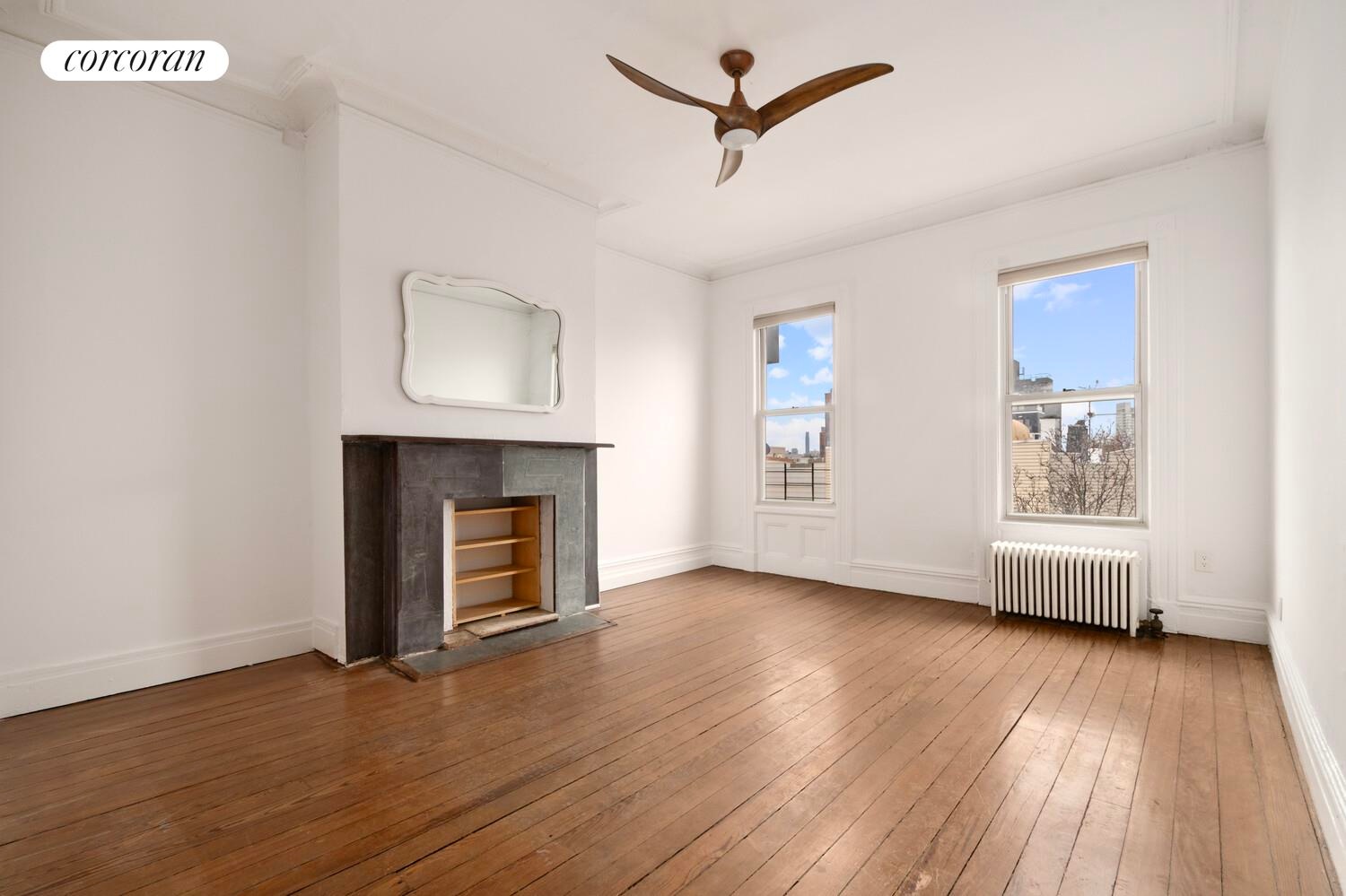This bright and charming 1-bedroom, 1-bathroom co-op sits in a well-maintained, recently renovated building-a rare find in Greenpoint. Apartment 4R is move-in ready and features a flexible layout with a home office, updated tiled bathroom, a modern country-style kitchen with ample cabinet space and new appliances, and original character details throughout. Highlights include a decorative soapstone fireplace mantel , tin ceilings, and beautiful hardwood floors. With striking eastern and western exposures, this top-floor home enjoys abundant natural light. The current layout can easily be converted into a loft style layout (alternate floor plan available).