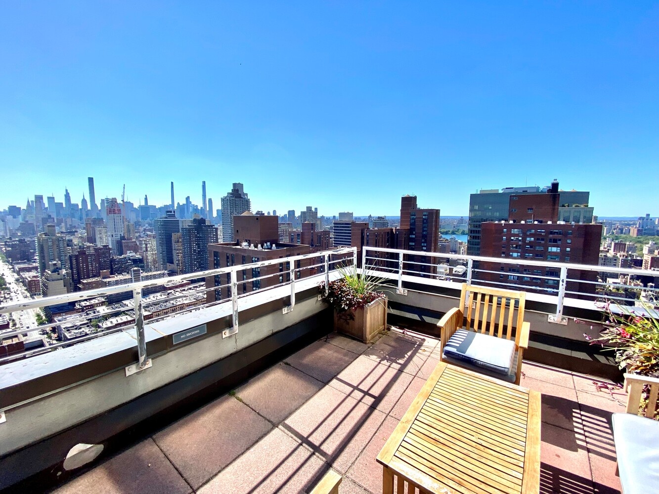 The sun drenched, large south facing bedroom has city and river views and a huge walk in closet and a marble en-suite bathroom. Additional niceties include a large entry foyer, pass through windowed kitchen with granite counter tops and custom cabinets, brand new floors, renovated second bath with shower stall, great closets and personal terminal A/C units.