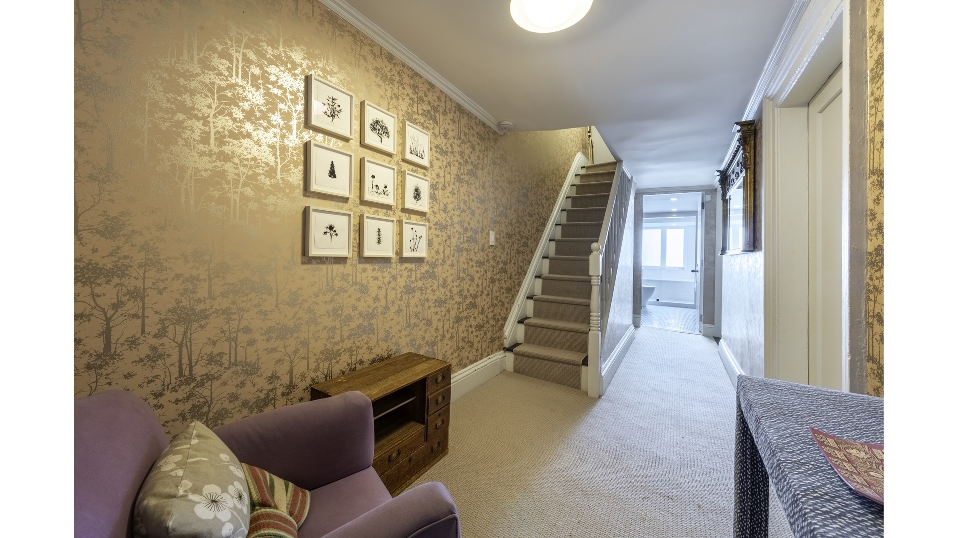 There is a beautifully decorated powder room on this floor, and thru-wall AC.
