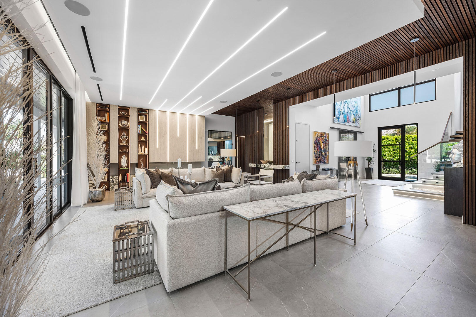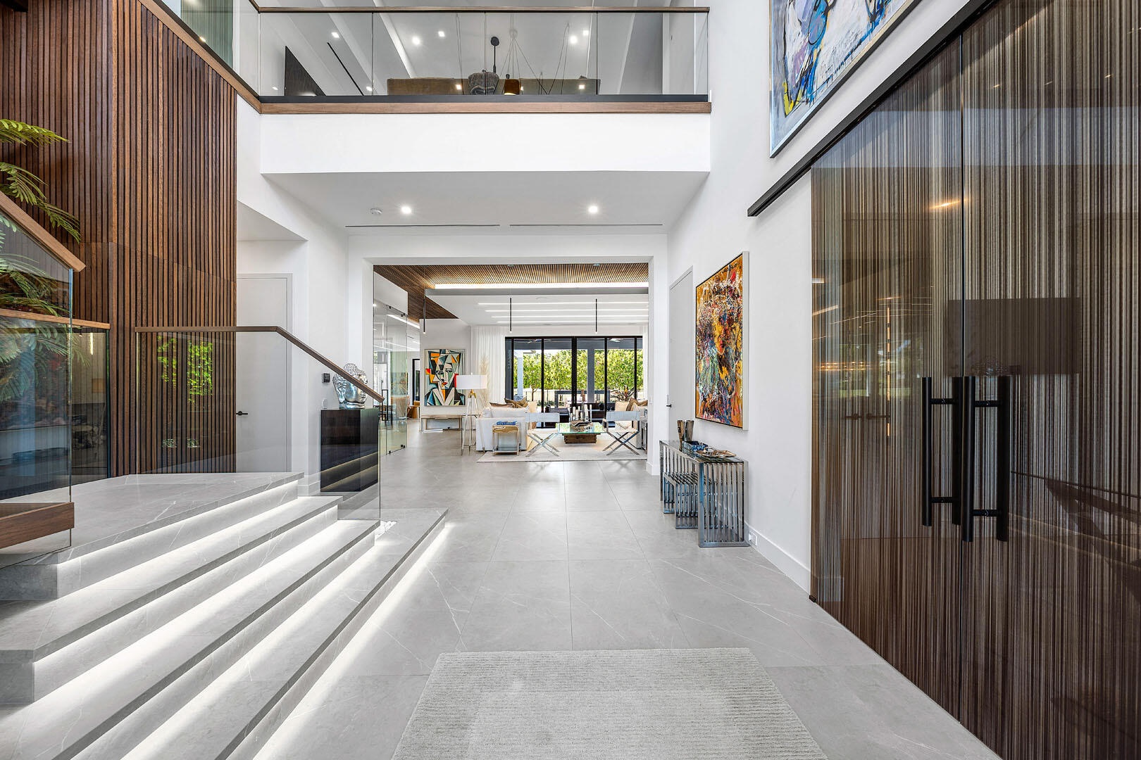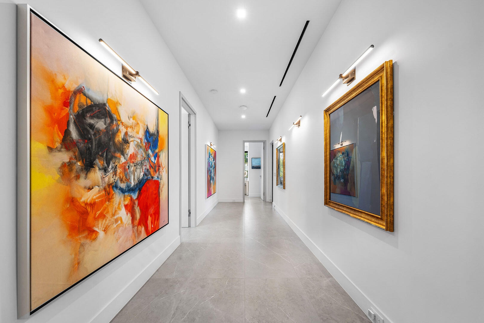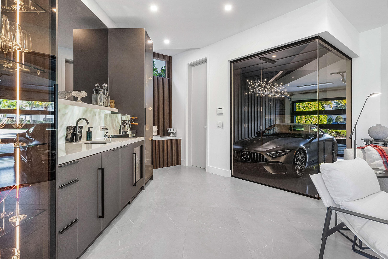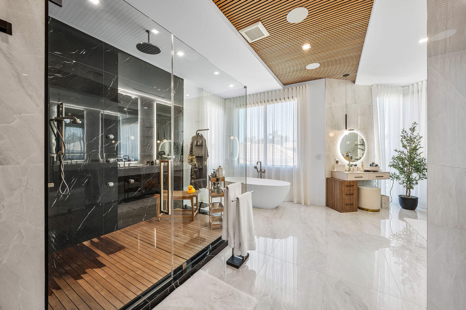 Welcome to 117 Thatch Palm Cove, located on the quietest cul-de-sac street in the prestigious Royal Palm Yacht & Country Club. Built in 2023 by Primo Construction, this golf course estate offers 165 feet of prime golf frontage with sweeping views of a serene pond and the Jack Nicklaus signature golf course, and features over 7,700 square feet of luxurious living space with 5 bedrooms, 6 baths, and a club room. Floor-to-ceiling glass brings in ample natural light and perfectly frames the tranquil water and golf views, creating a seamless connection between the chef's kitchen, family room, great room, and the resort-style outdoor area with heated pool, spa, covered seating, and lush landscaping. Additional highlights include a private putting green, full-house generator, and a three-car garage, one of which is an incredible show garage designed to showcase a prized automobile.