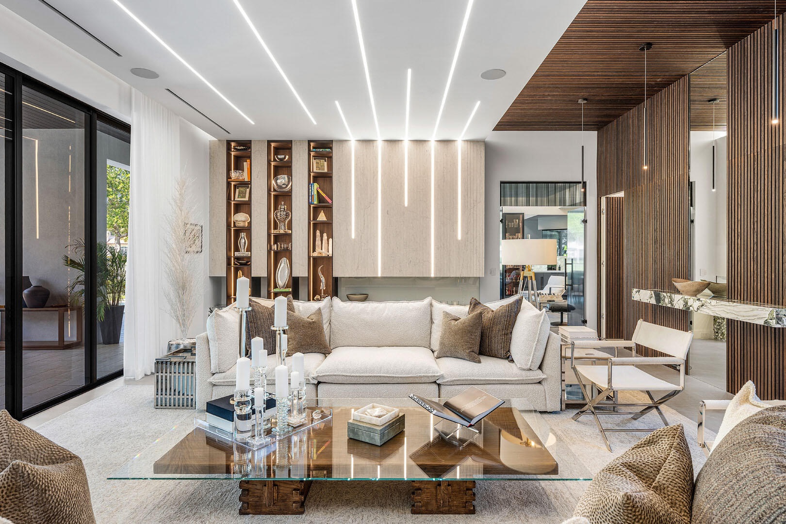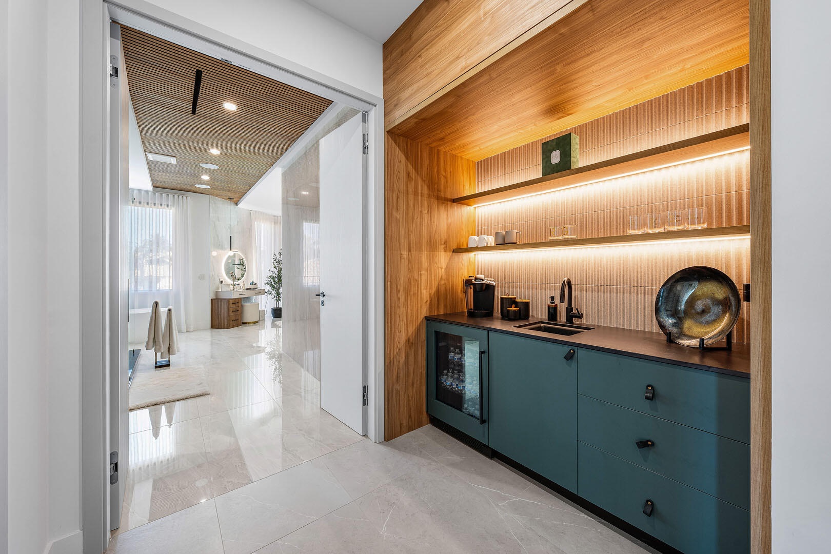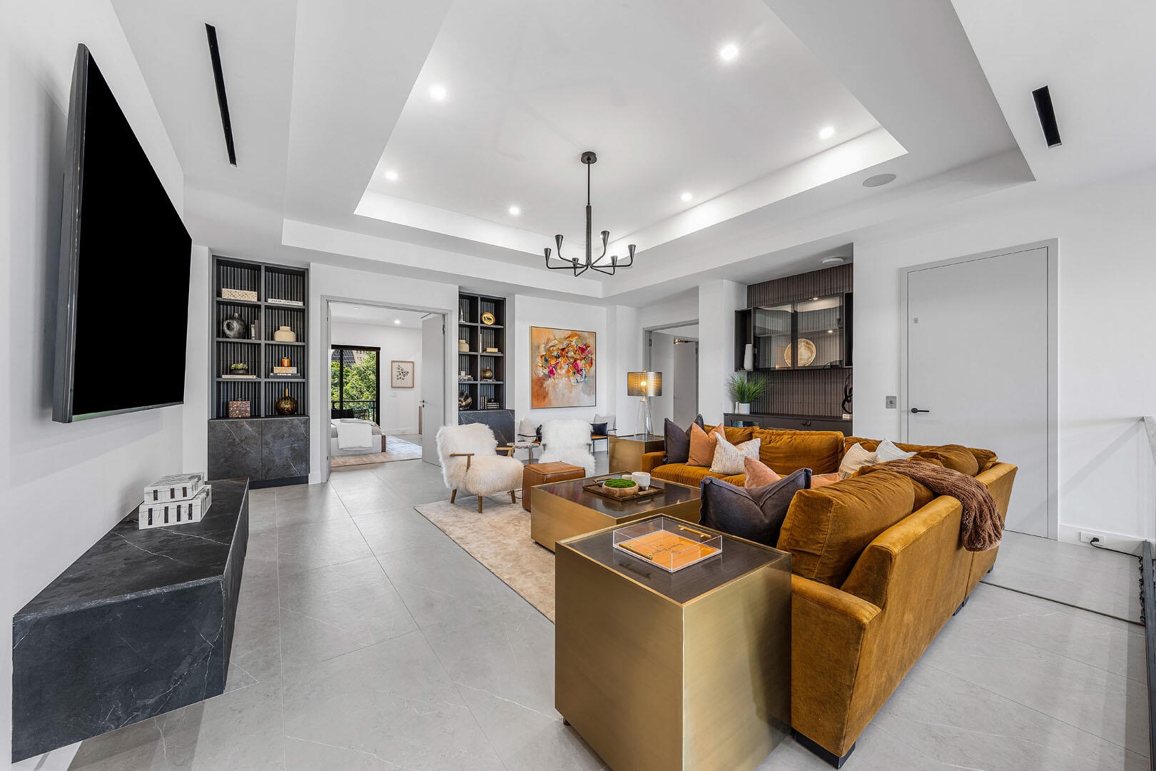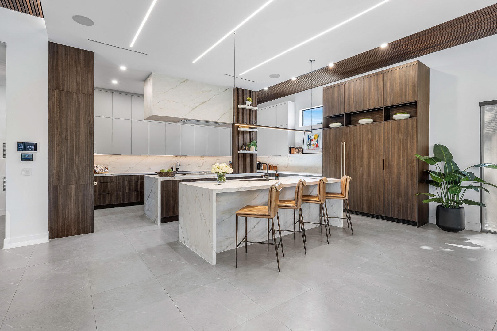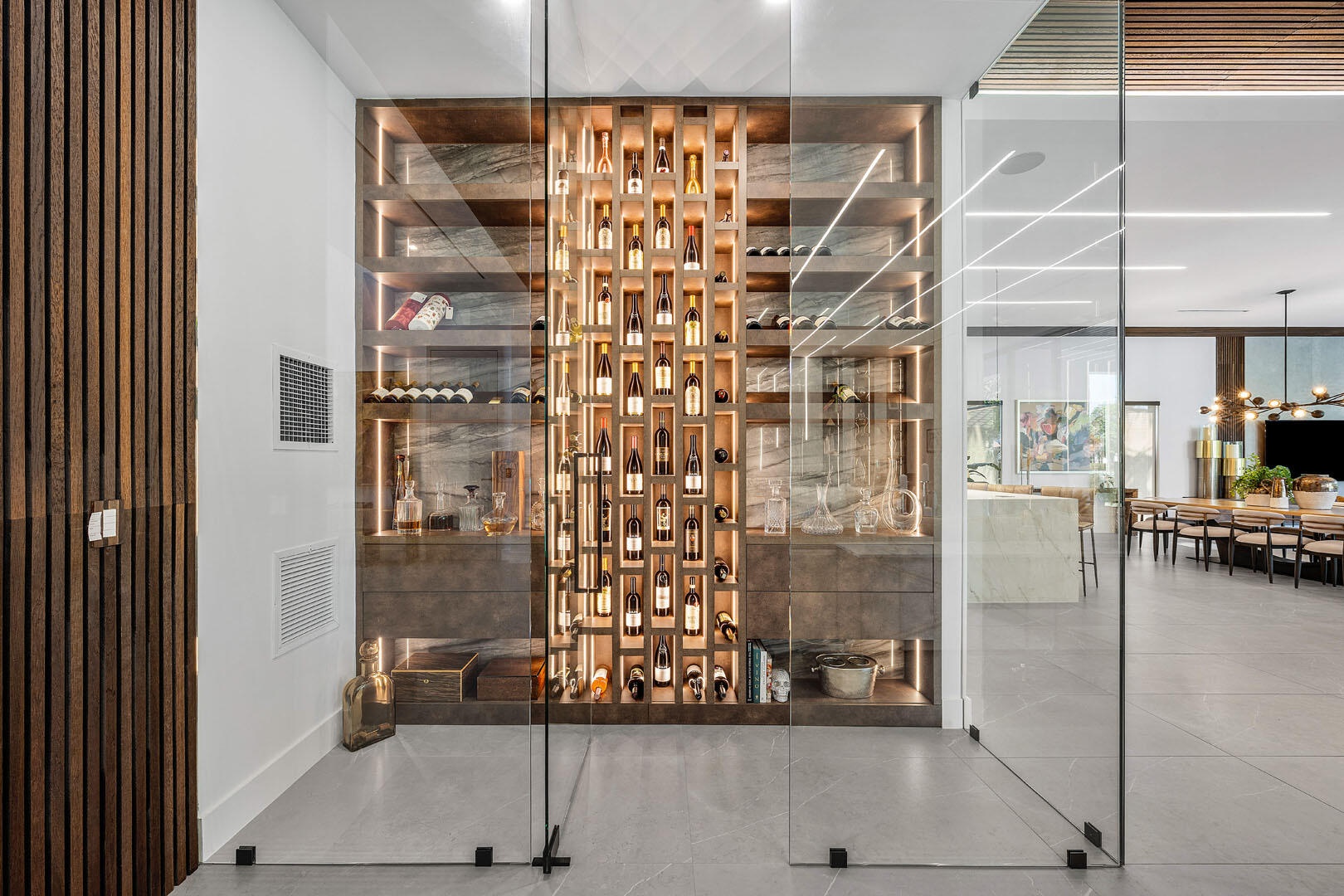 Welcome to 117 Thatch Palm Cove, located on the quietest cul-de-sac street in the prestigious Royal Palm Yacht & Country Club. Built in 2023 by Primo Construction, this golf course estate offers 165 feet of prime golf frontage with sweeping views of a serene pond and the Jack Nicklaus signature golf course, and features over 7,700 square feet of luxurious living space with 5 bedrooms, 6 baths, and a club room. Floor-to-ceiling glass brings in ample natural light and perfectly frames the tranquil water and golf views, creating a seamless connection between the chef's kitchen, family room, great room, and the resort-style outdoor area with heated pool, spa, covered seating, and lush landscaping. Additional highlights include a private putting green, full-house generator, and a three-car garage, one of which is an incredible show garage designed to showcase a prized automobile.