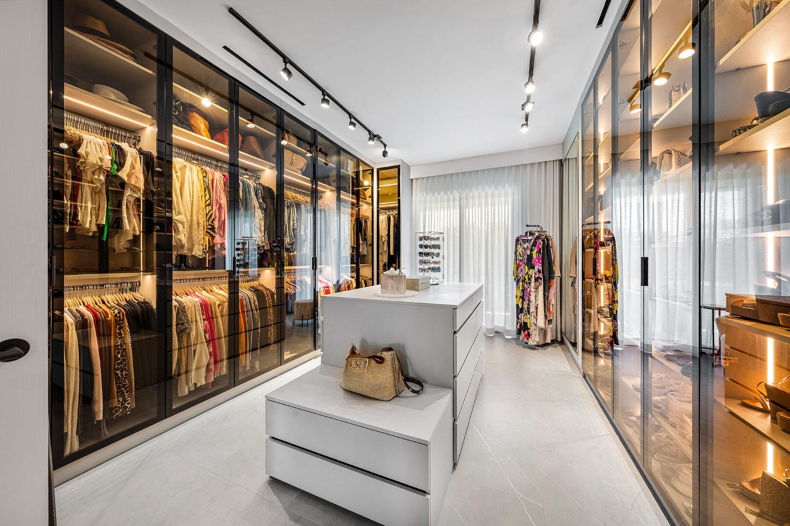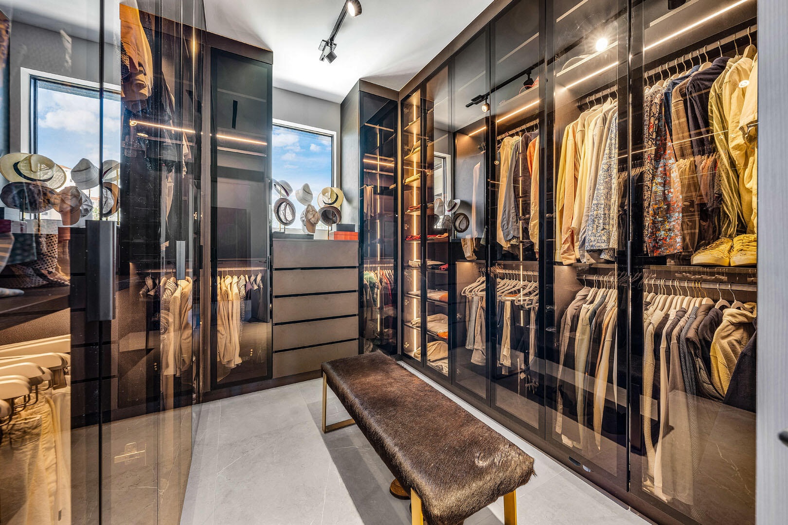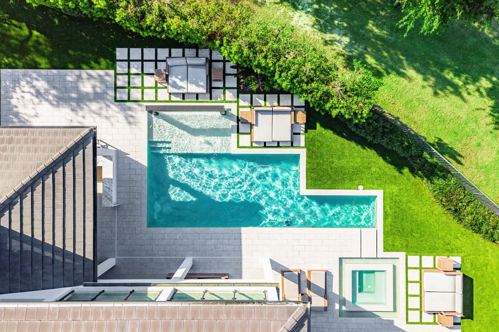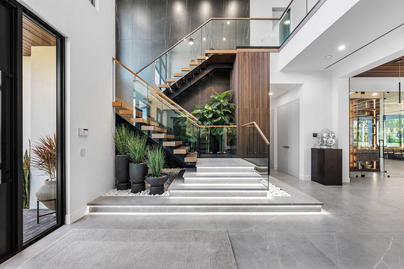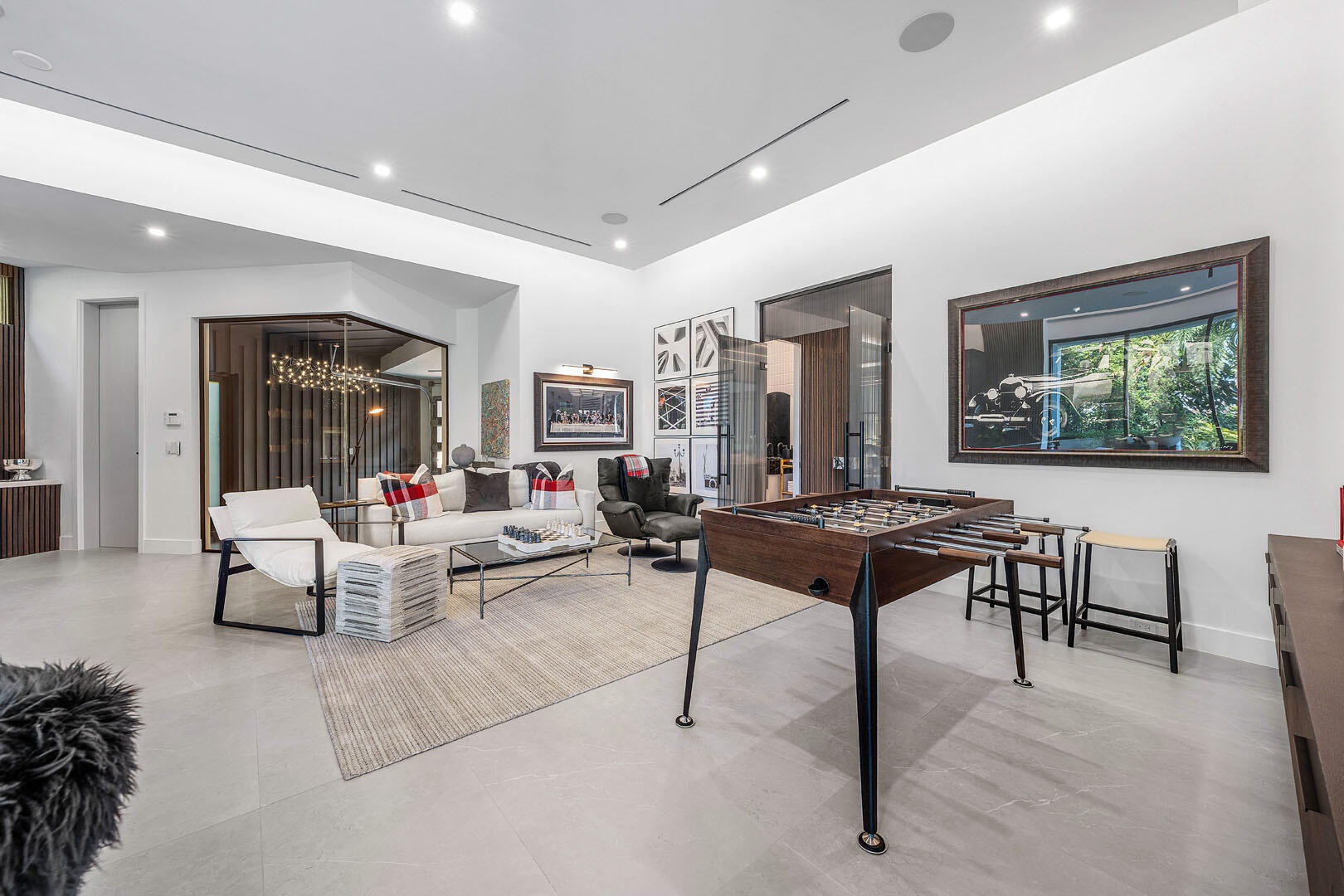 Welcome to 117 Thatch Palm Cove, located on the quietest cul-de-sac street in the prestigious Royal Palm Yacht & Country Club. Built in 2023 by Primo Construction, this golf course estate offers 165 feet of prime golf frontage with sweeping views of a serene pond and the Jack Nicklaus signature golf course, and features over 7,700 square feet of luxurious living space with 5 bedrooms, 6 baths, and a club room. Floor-to-ceiling glass brings in ample natural light and perfectly frames the tranquil water and golf views, creating a seamless connection between the chef's kitchen, family room, great room, and the resort-style outdoor area with heated pool, spa, covered seating, and lush landscaping. Additional highlights include a private putting green, full-house generator, and a three-car garage, one of which is an incredible show garage designed to showcase a prized automobile.